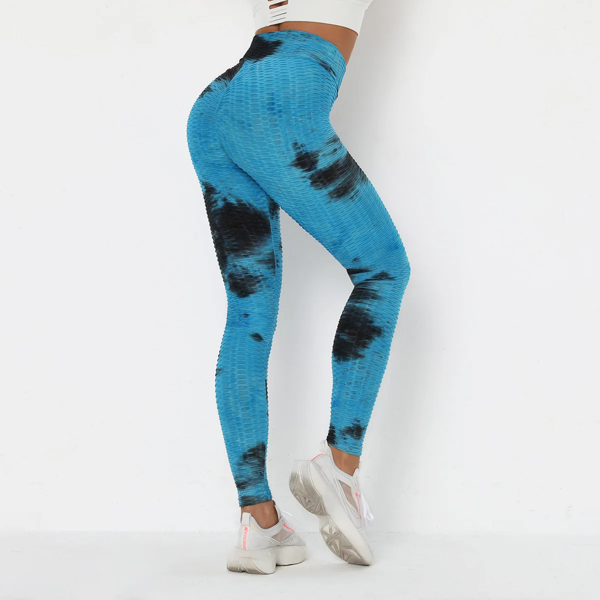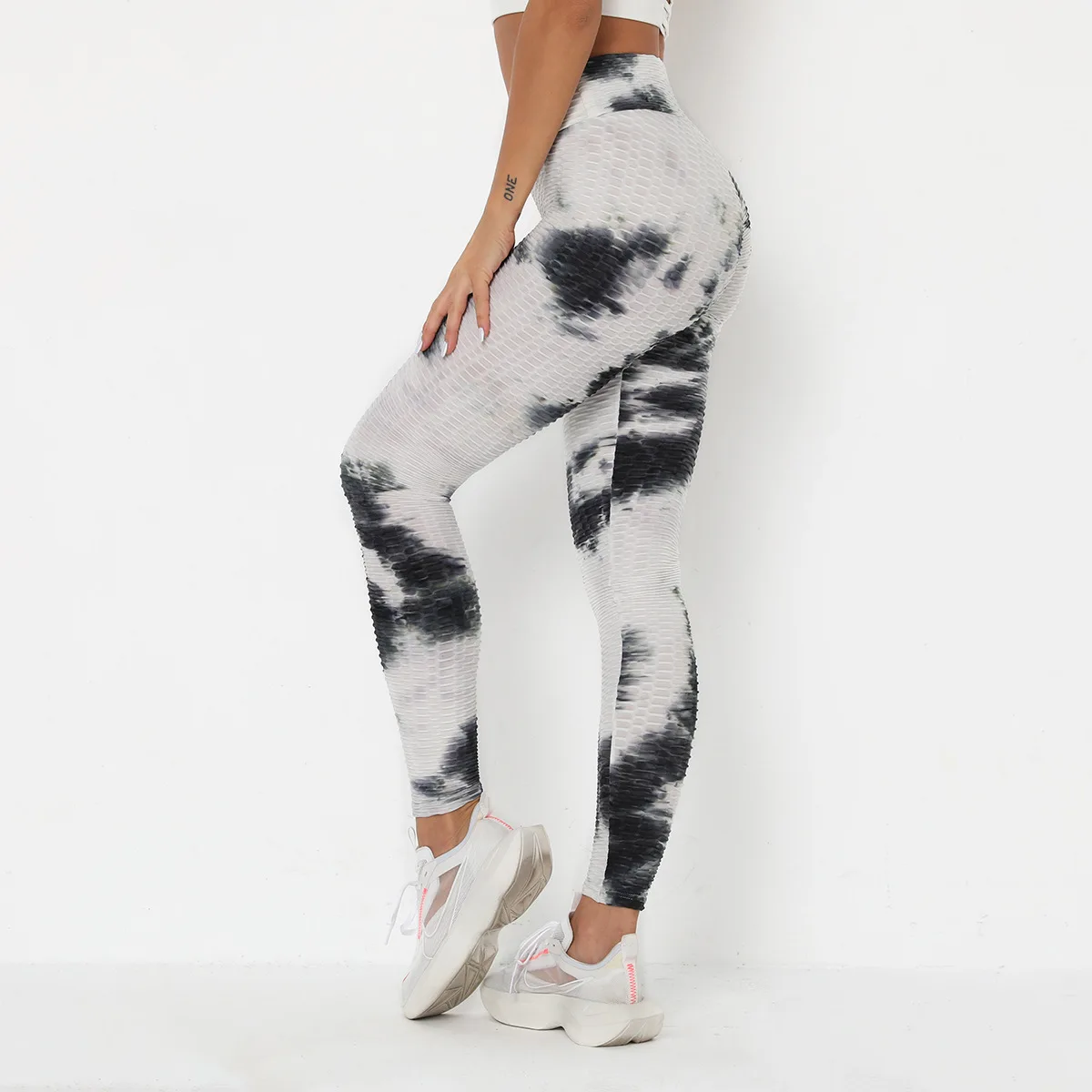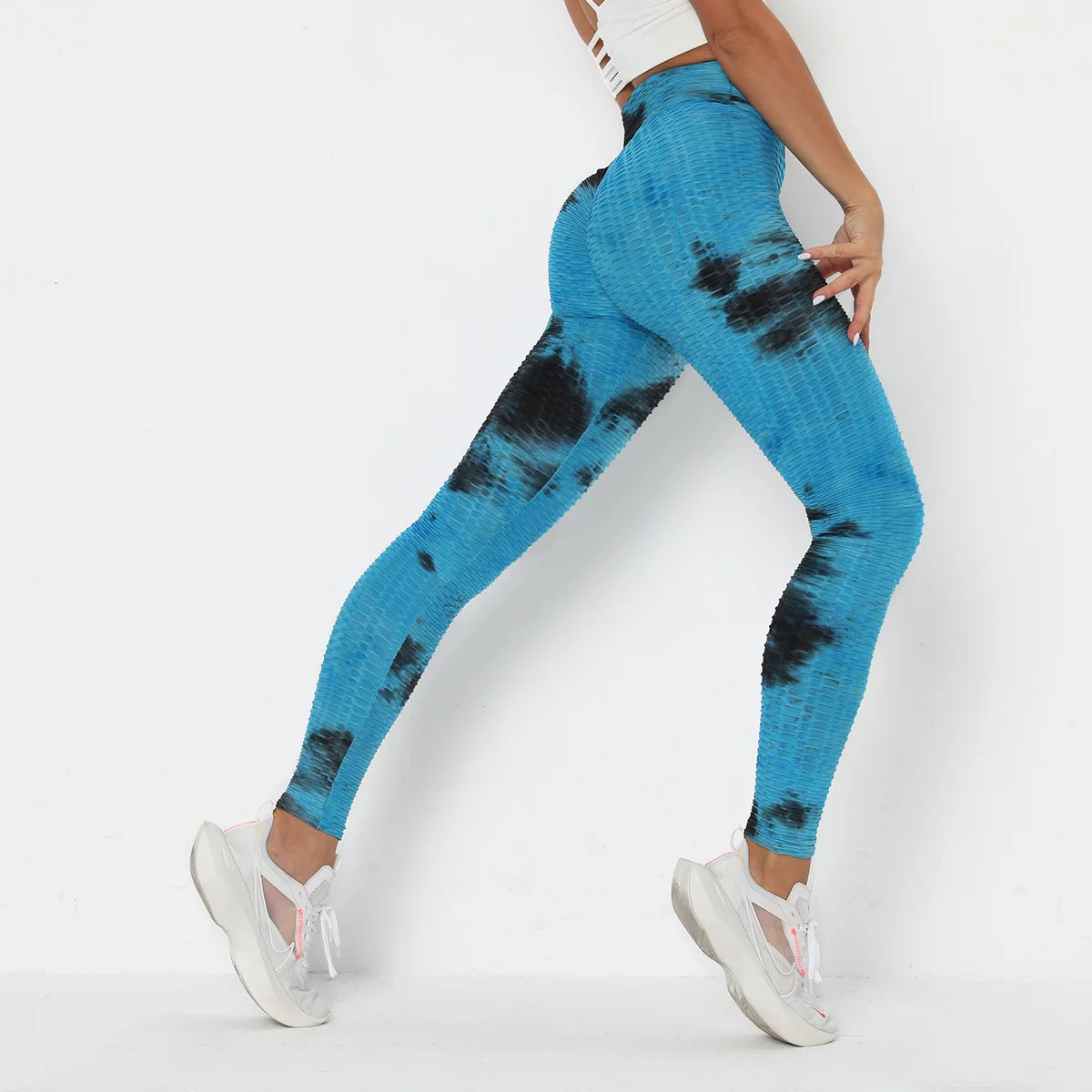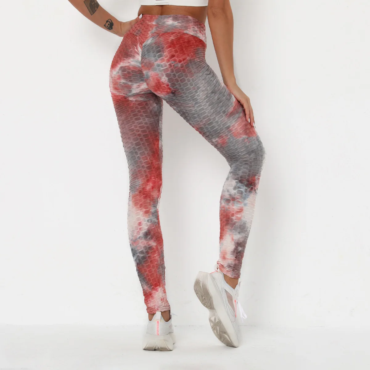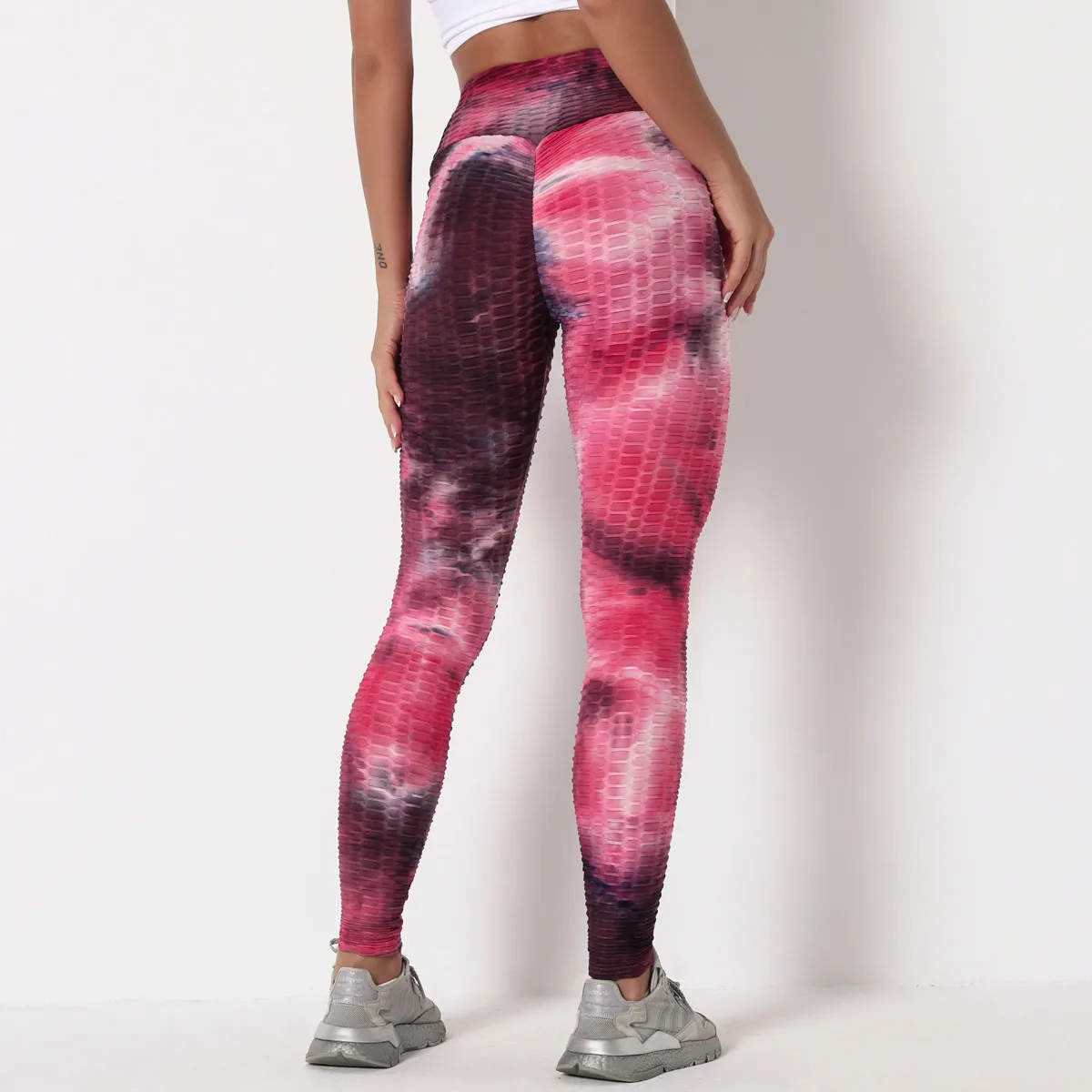 Женские штаны для йоги с принтом тай-дай, разноцветные жаккардовые леггинсы, зауженные, подтягивающие бедра, для фитнеса