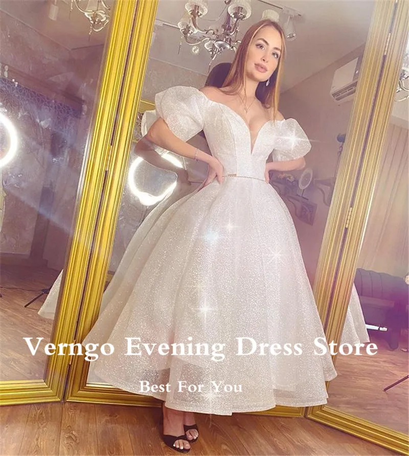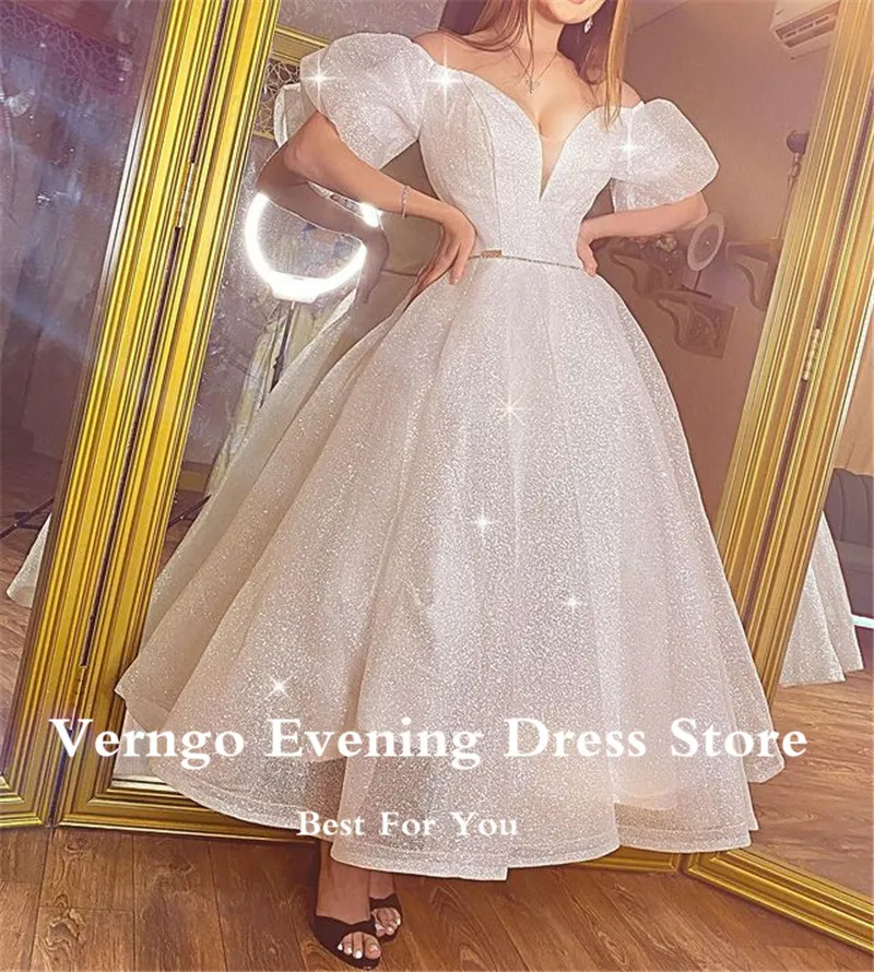 Бальное платье с блестками Verngo, белое блестящее бальное платье с открытыми плечами и короткими рукавами, пышная юбка длиной ниже колена, вечерние наряды принцессы