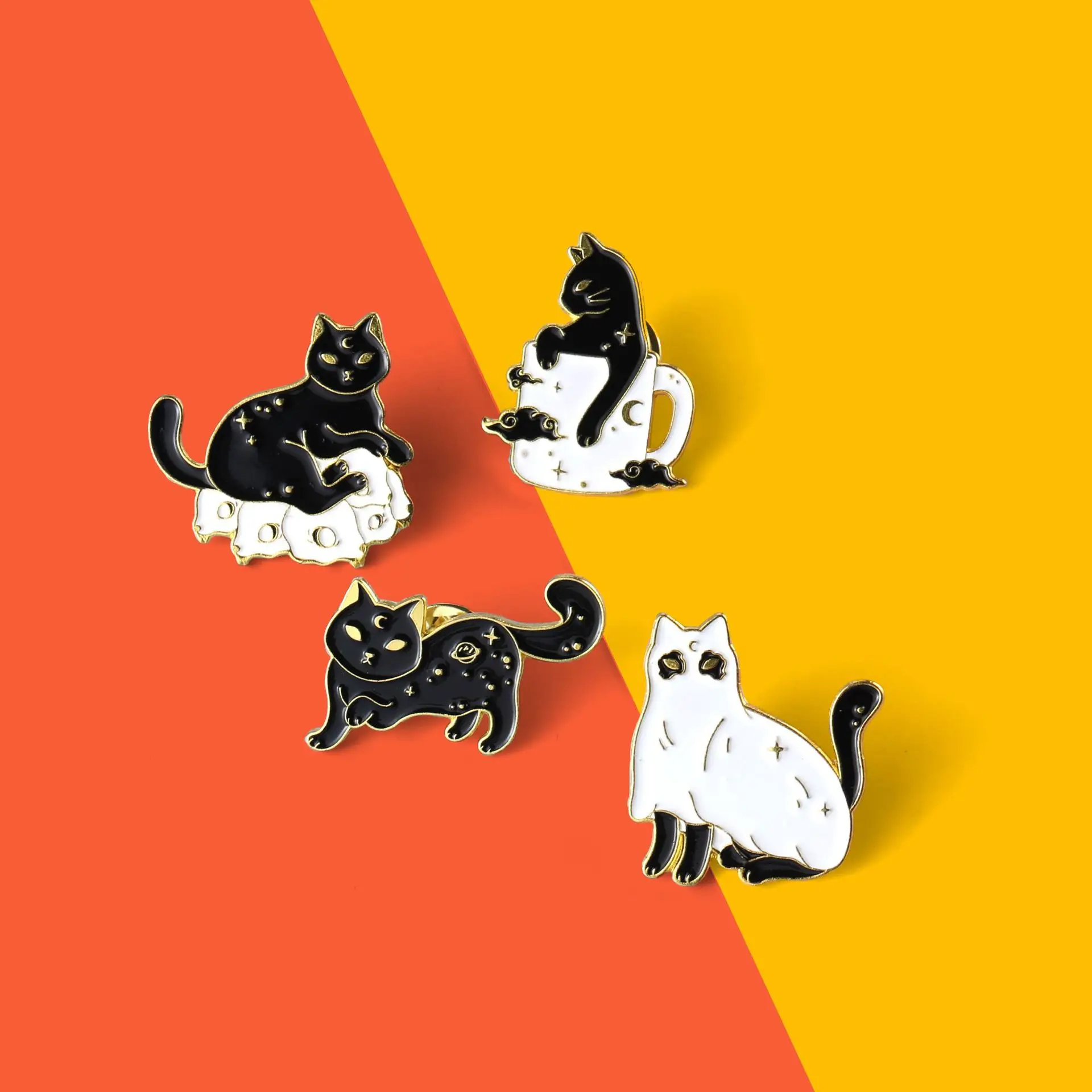 Эмалированная булавка в виде чашки ведьмы, кота, черно-белого кота,...
