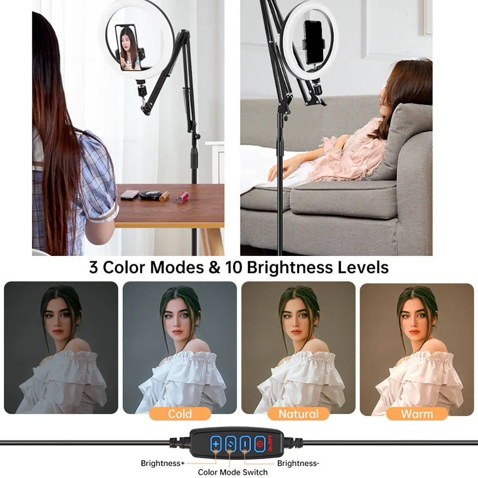 Кольцевой светодиодный светильник RGB для фотосъемки, лампа со штативом и держателем для телефона, подходит для съемки видео и Селфи