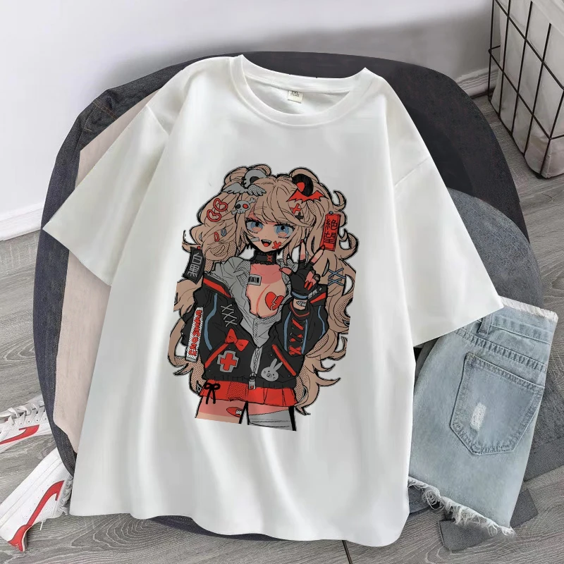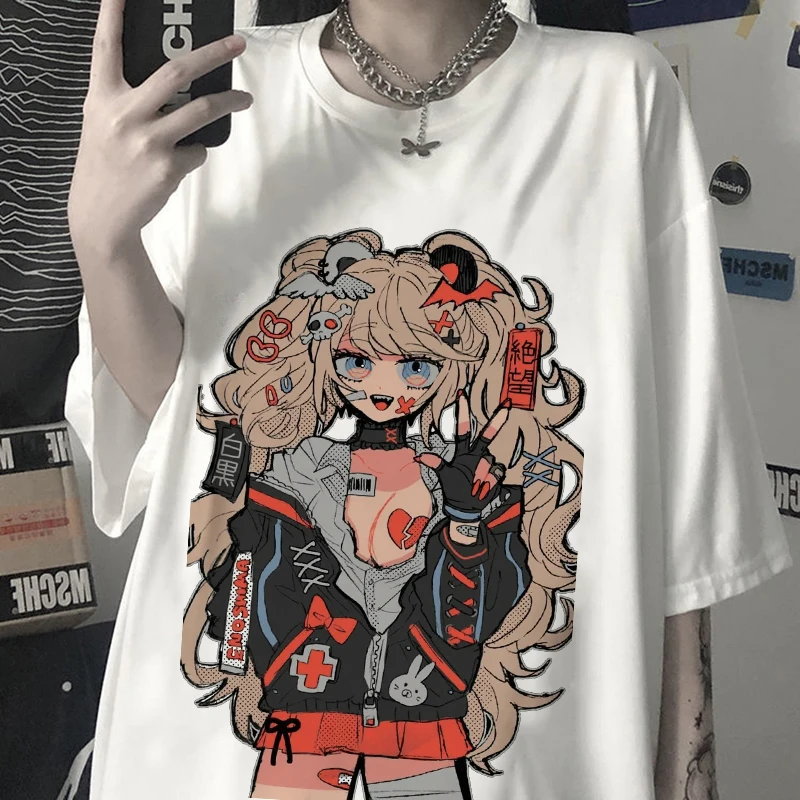 Футболка женская с коротким рукавом, Свободный Топ с принтом в стиле японского аниме, Готическая уличная одежда в стиле оверсайз, на лето