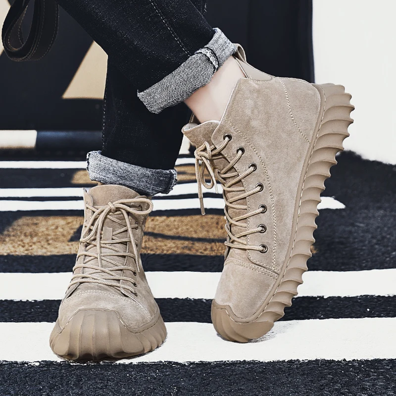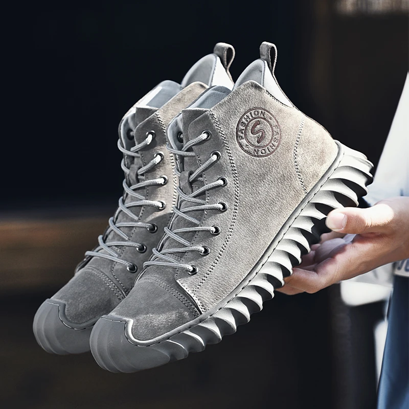 Новинка, мужские высокие ботинки из натуральной кожи, зимние мужские ботинки с бархатной подкладкой, уличные Нескользящие утепленные повседневные кроссовки
