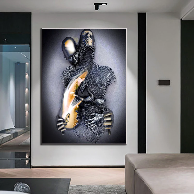 Металлическая фигурка, статуя, Картина на холсте, романтический абстрактный постер Sculture и принты, современная картина для интерьера гостиной, украшение
