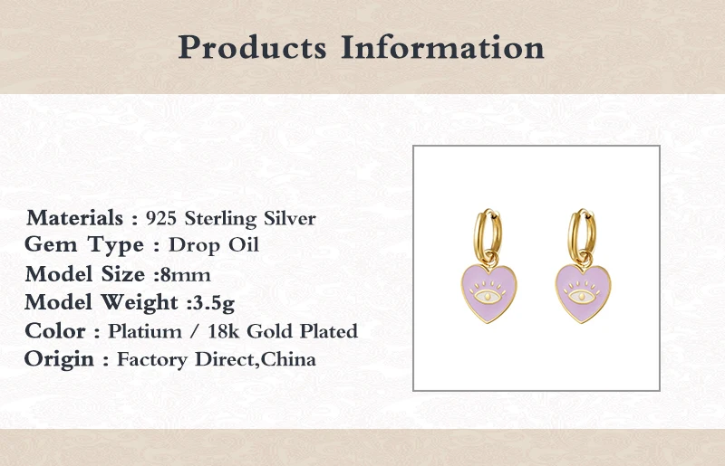 Серьги-кольца ROXI с эмалью в форме сердца с глазами для женщин и д...