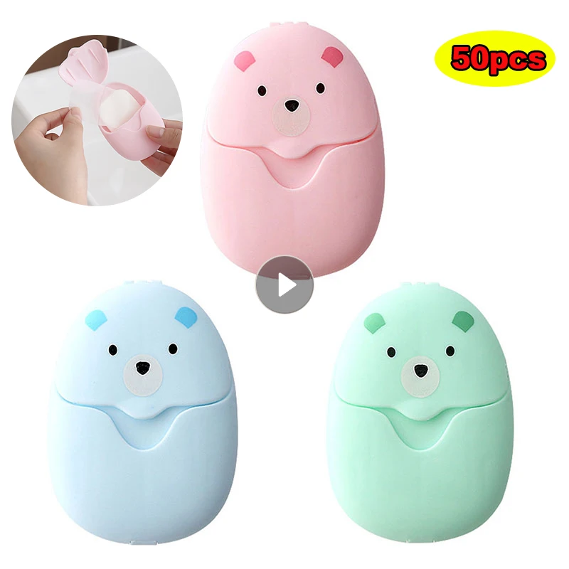 50 шт. одноразовых упаковочных бумажных мыла, дорожная портативная коробка для мытья рук, лист ароматизированных кусочков, мини-бумага для мыла для путешествий, кемпинга, пешего туризма