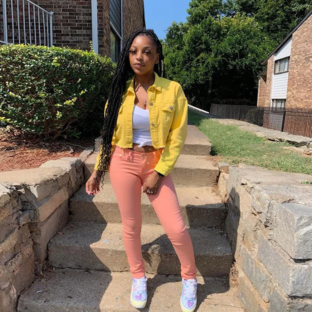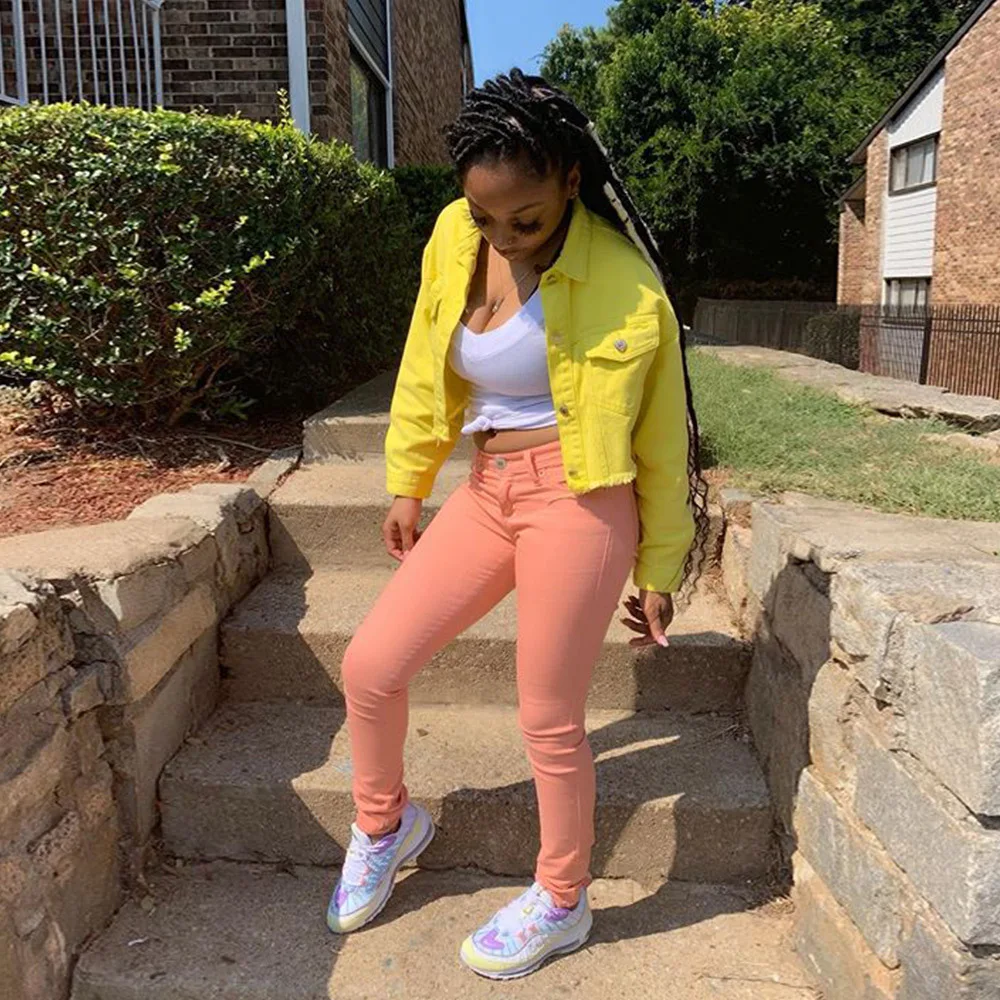 Женская джинсовая куртка, Короткая желтая джинсовая куртка на весну и осень, повседневная свободная Зеленая, оранжевая, черная куртка, размера плюс