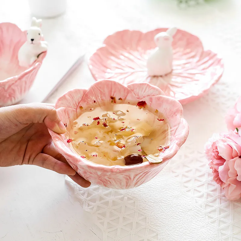 Детская керамическая посуда, милая тарелка с мультяшным изображением кролика, фруктов, десертов, салата, рамен, миска, кухонные аксессуары