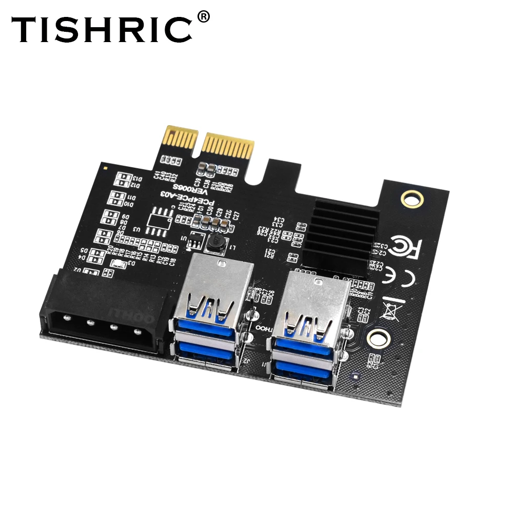 TISHRIC New PCI Express множитель PCI-E Райзер от 1 до 4 PCIE USB 3,0 концентратор 1x 16x Райзер для адаптера видеокарты для майнинга BTC