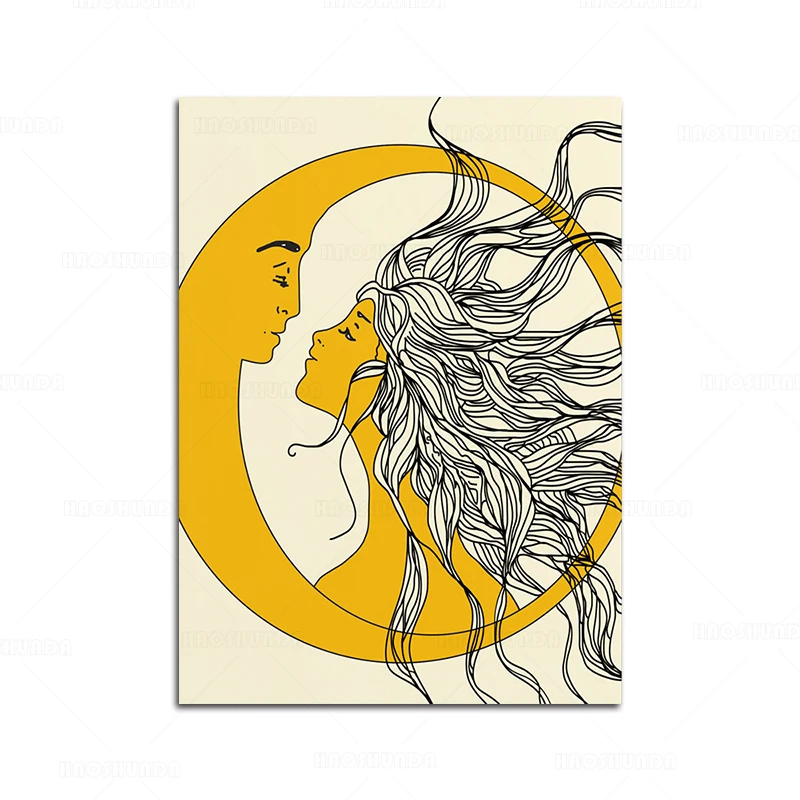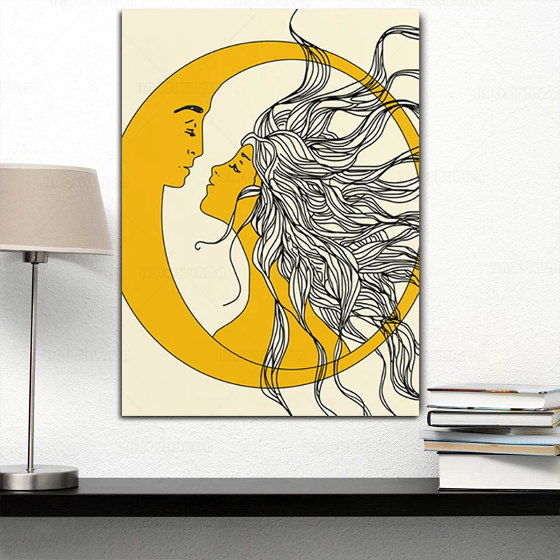 Настенная Картина на холсте с изображением Солнца и Луны, скандинавские плакаты и принты, Подарочная картина на стену Idear для гостиной, украшение для дома, рамка