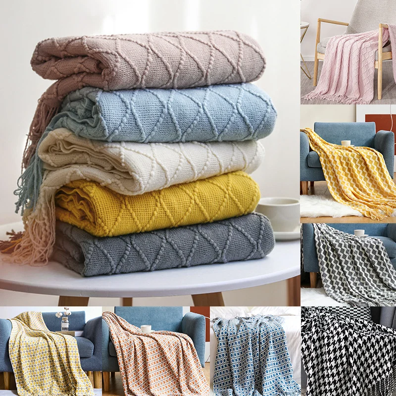 Вязаное одеяло, нордическое одеяло с кисточками, однотонное украшение для дивана, дорожное кондиционер, декоративное одеяло для кровати ручной работы