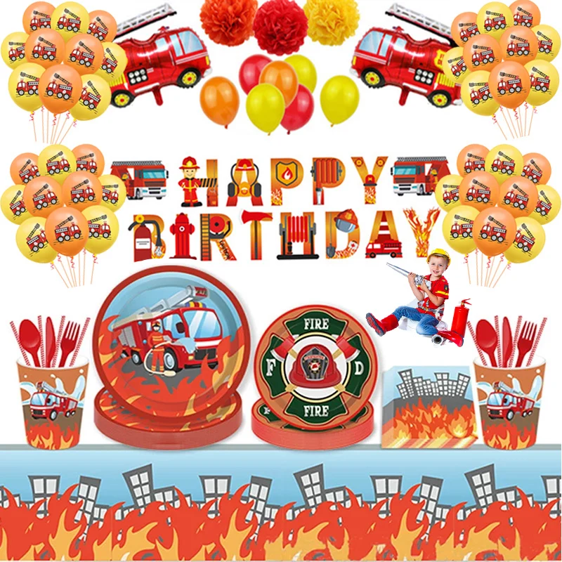 Пожарный украшение для торта на день рождения на тему "Лошадки карусели" Вечерние принадлежности бумажный стаканчик, тарелка, салфетки, флаги, вечерние, для детей, для мальчиков, для украшения воздушных шаров
