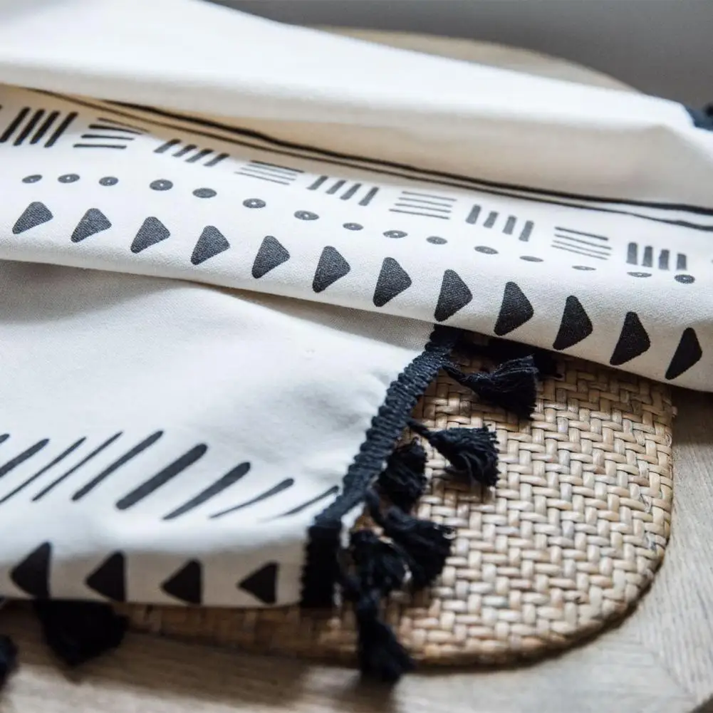 Богемная штора s затемненная термоизолированная хлопковая простая льняная черная светло-голубая кисточка бежевая Геометрическая Штора для дома