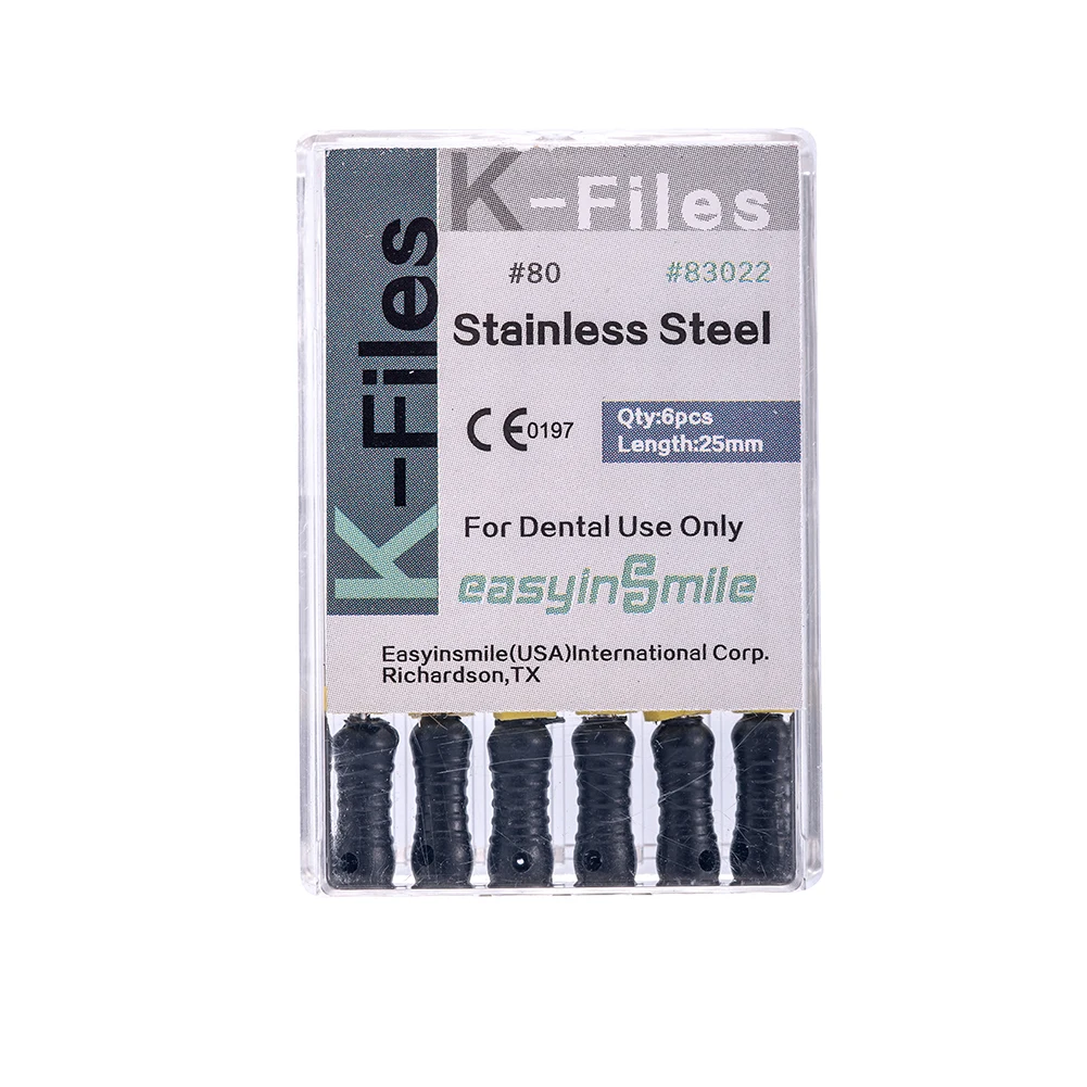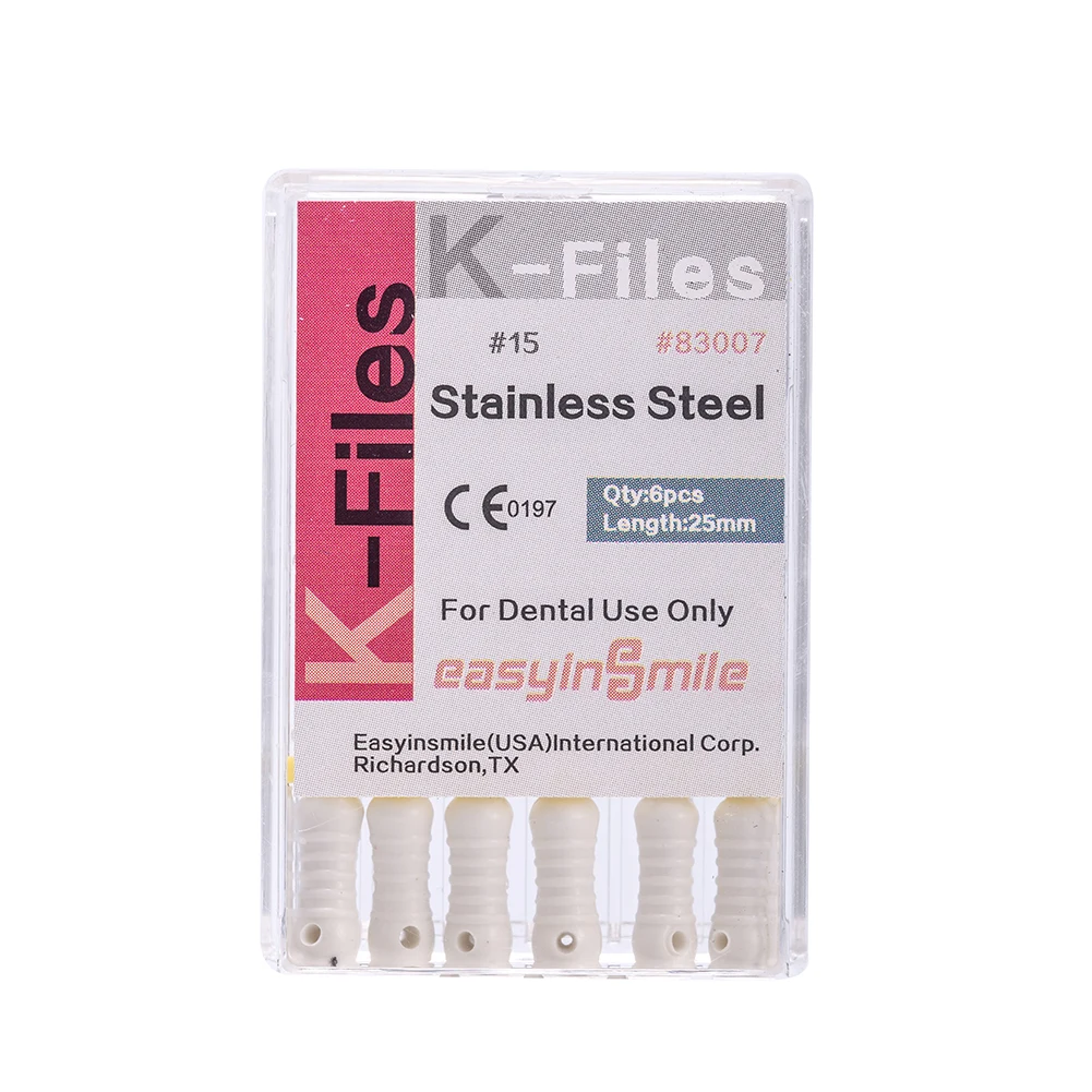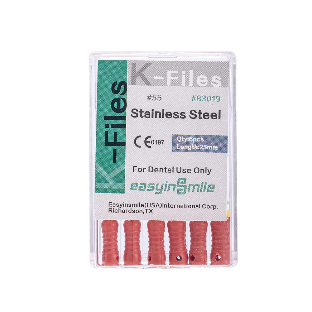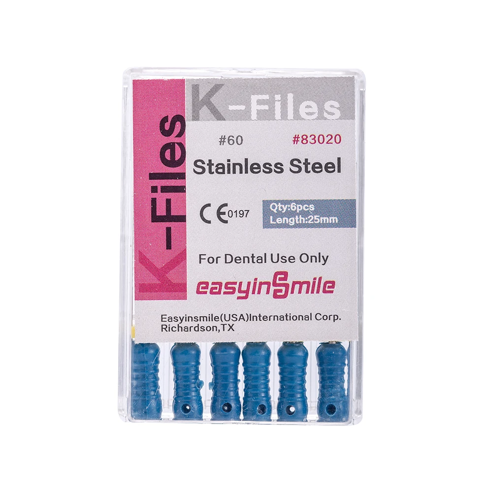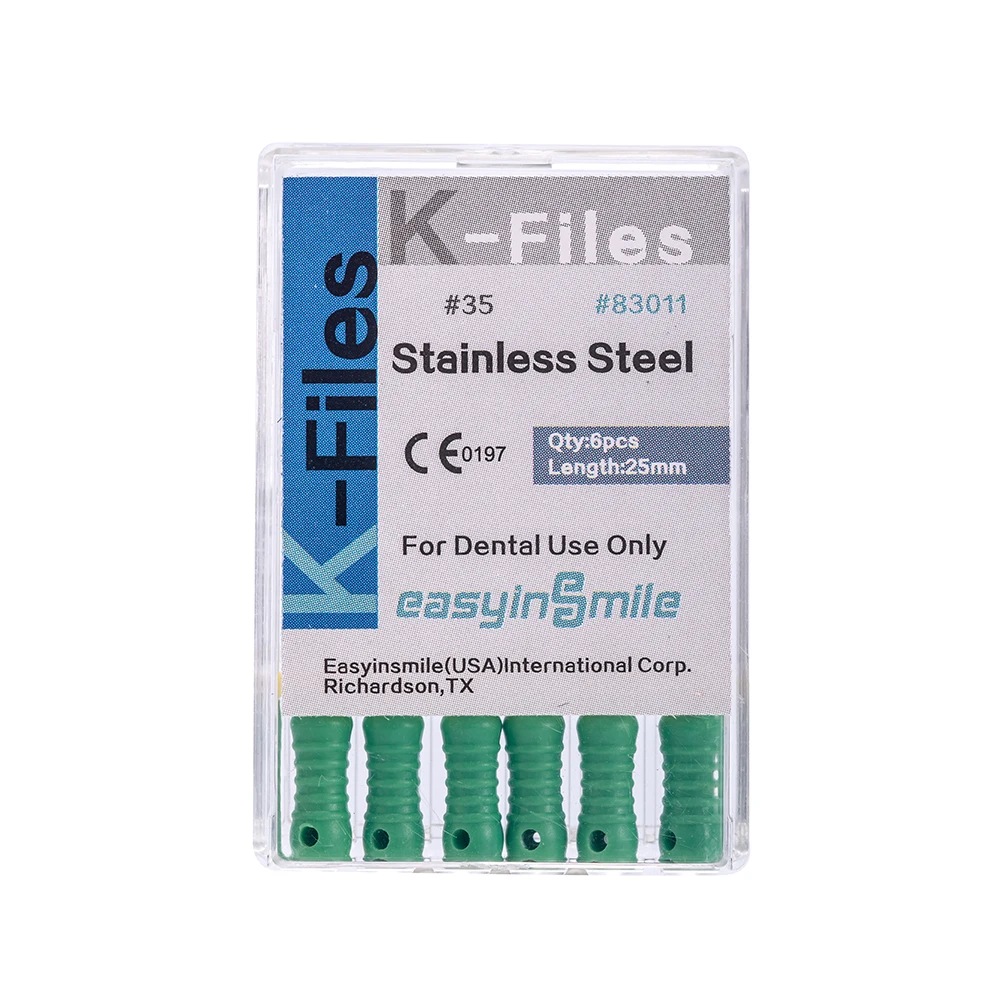 Стоматологический эндодододонтический K-файл, 25 мм, нержавеющая сталь, ручное использование, лечение корневого канала, гибкий EASYINSMILE, 6 файловупаковка