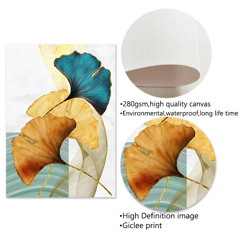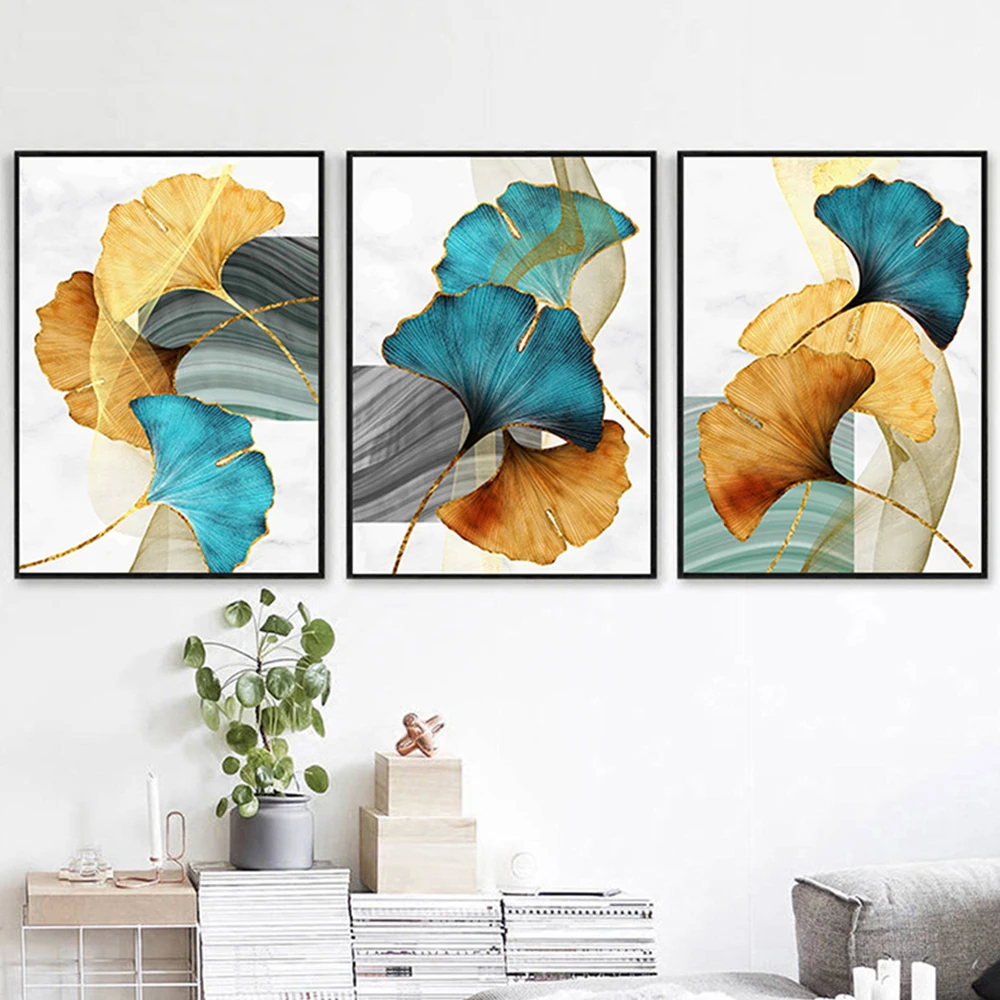 Роскошный абстрактный постер с листьями гинкго, холст с принтом, зо...