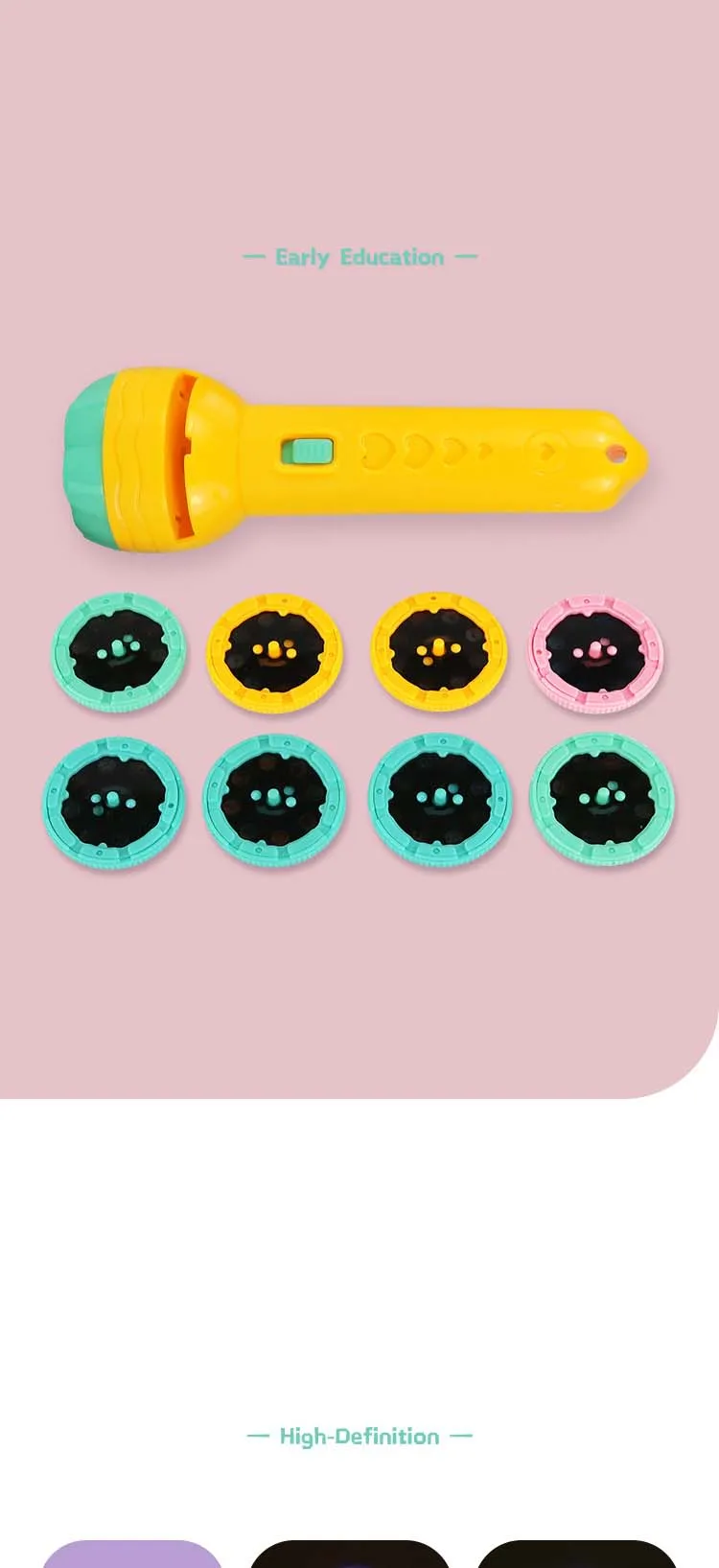 * Название, детский фонарик-проектор* Размеры: 4,5*5*16 см/1,77*1,97 * 6.3in* Материал: АБС-пластик* Возраст: 3 года +* Посылка включает в себя: 1 фонарик-проектор + 4 карты (по 8 узоров) + 3 батареи* Эффективное рекомендуемое расстояние облучения: менее 50 смЛинза с поворотом на 90 градусов. 8 моделей, изменения в любое время и в любом месте.Идеальный подарок детям на день рождения и Рождество.Его можно спроектировать на стены или потолки в темноте. Разумное расстояние проекции составляет около 50-150 см, вращается для регулировки определения.Приятный дизайн и милый изменяющий изображение проектор помогут детям непрерывно наслаждаться удовольствием от рук и пальцев, стимулируя мозги при просмотре изображений.Изготовлено из пластика, отличное качество изготовления, гладкая кромка не поцарапает детскую руку.
