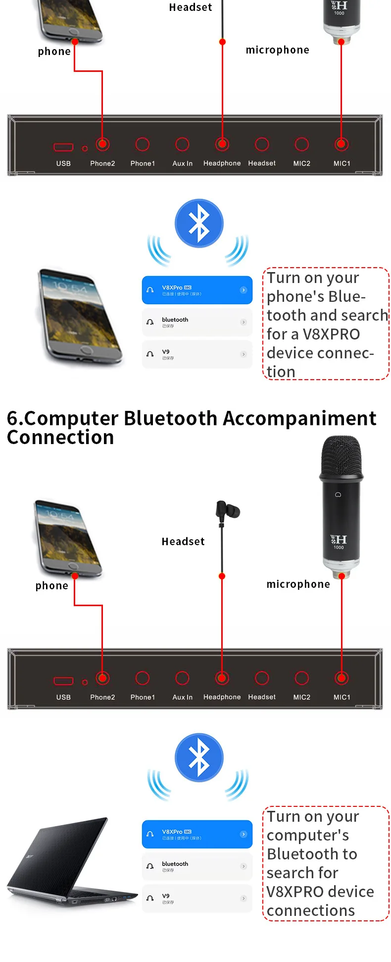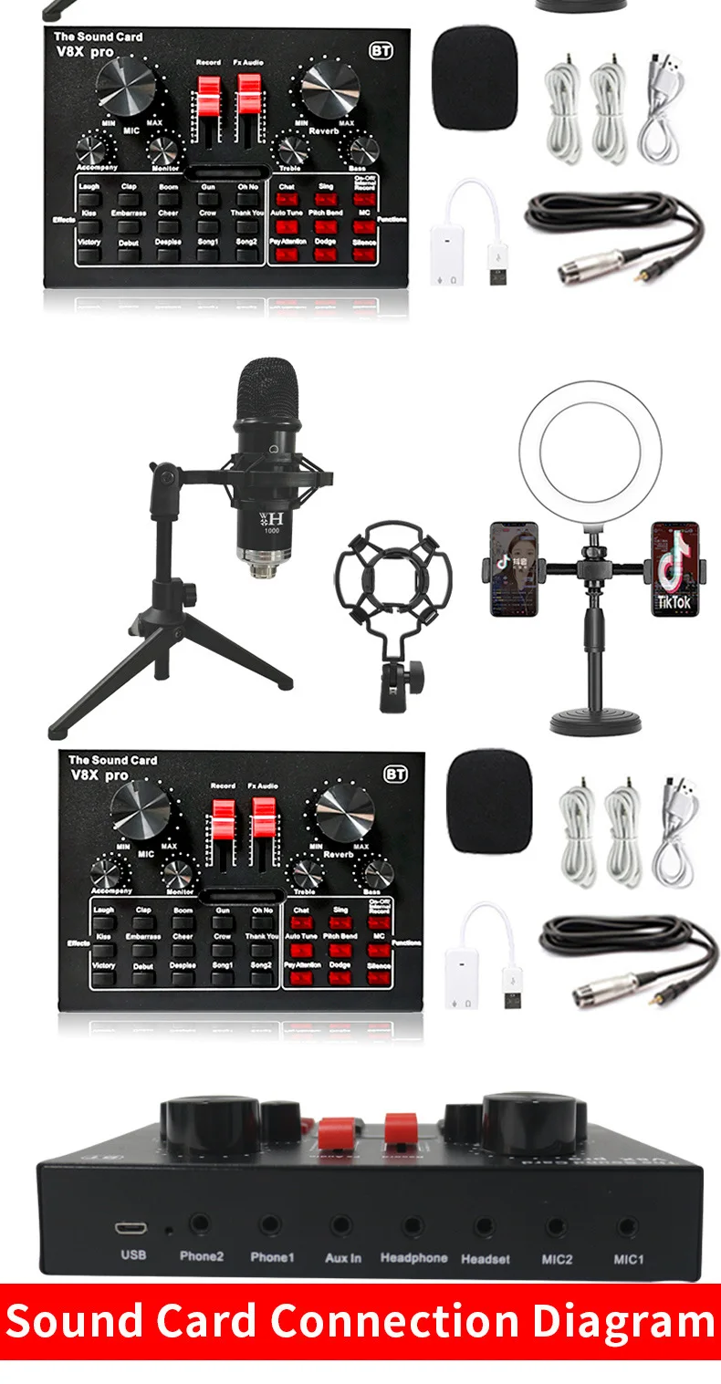 Беспроводной микрофон для караоке WXH1000 звуковая карта V8XPRO Blu...