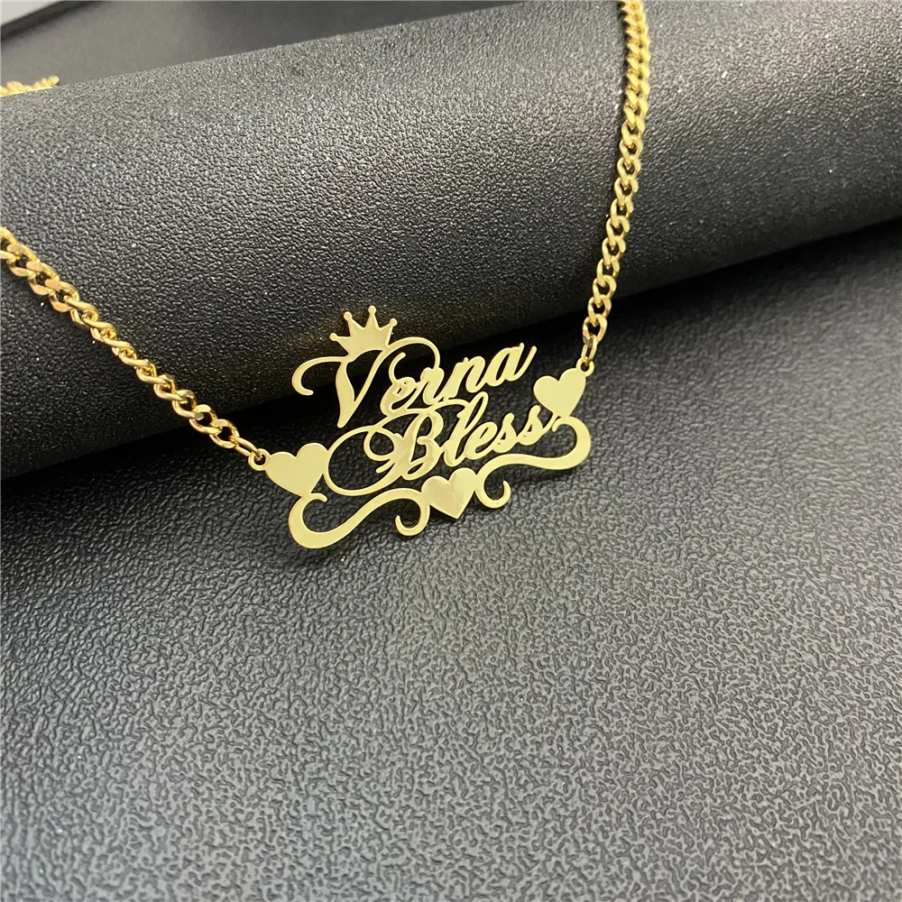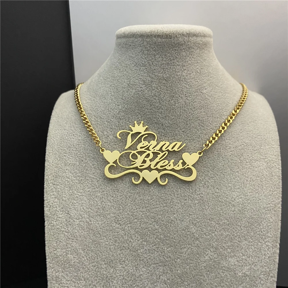 Ожерелье из нержавеющей стали VishiowCo под заказ, Золотая кубинская цепочка, персонализированное ожерелье с двумя именами с сердцем, ювелирные изделия, лучший подарок