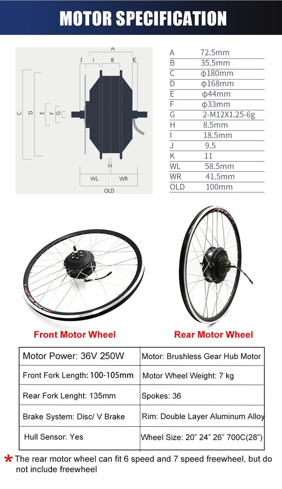 * Этот задний двигатель может соответствовать 6 скоростям и 7 скоростям свободного хода, но не включает бесплатное колесо
