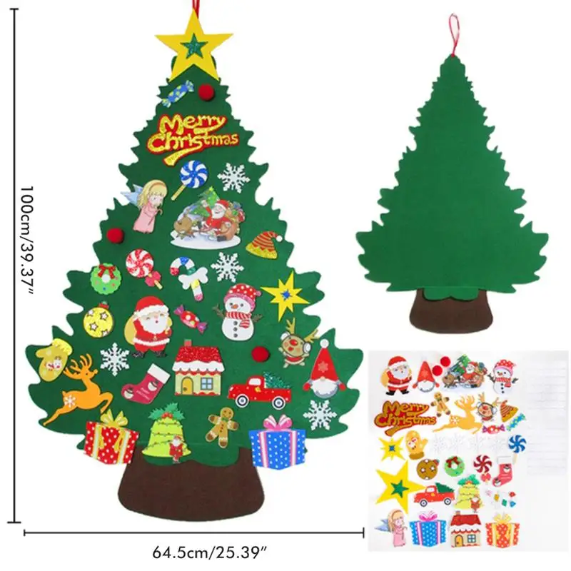 [Идеальный Рождественский подарок для детей] дети могут весело провести время, украшая собственную рождественскую елку. Способствует воображению и обучению детей. Размер Рождественской елки 100 см * 70 см в ширину, что очень подходит для детей, чтобы взять и поиграть. Украшение войлочной елки вместе может усилить отношения между родителем и ребенком.