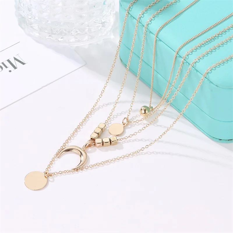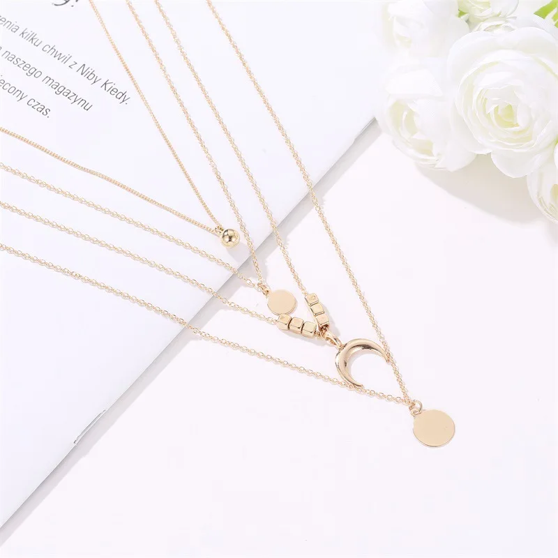 Европа и Америка многослойное ретро ожерелье богемное четырехслойное ожерелье с кисточками лунный диск сплав кулон ожерелье