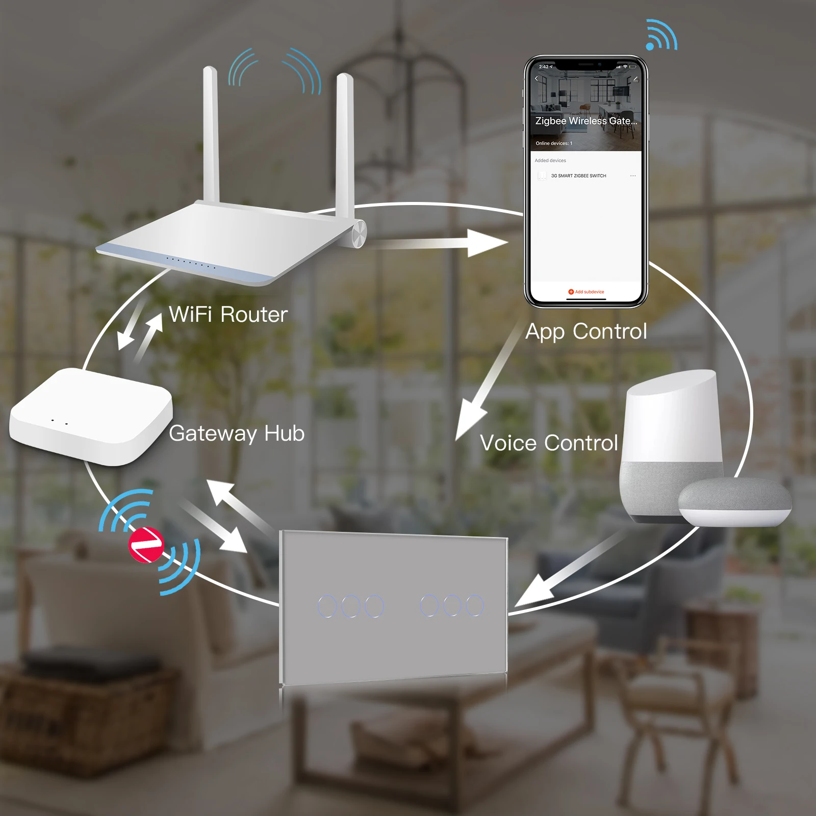 Настенный сенсорный выключатель BSEED Zigbee, беспроводной смарт-пе...