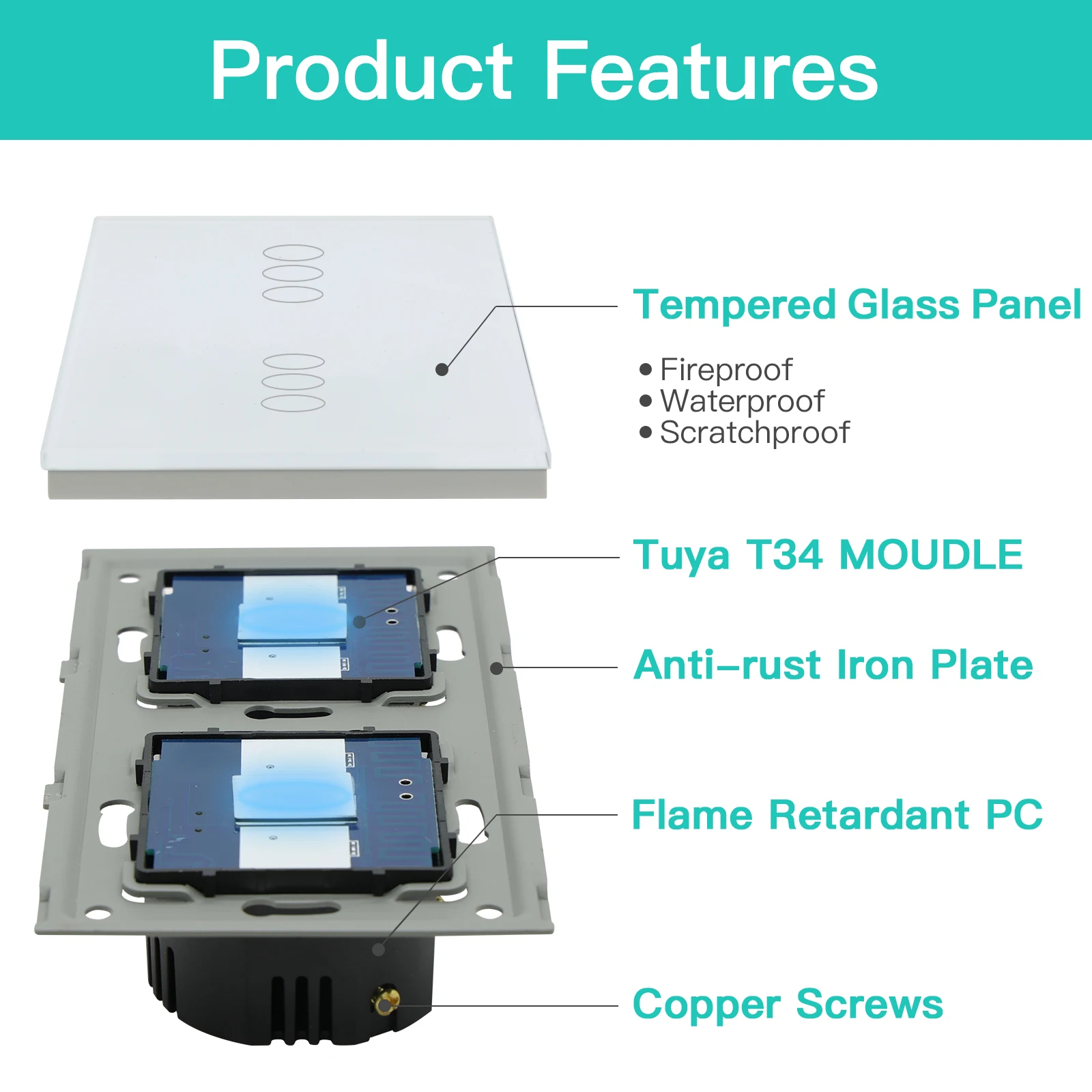 Настенный сенсорный выключатель BSEED Zigbee, двойной умный сенсорн...