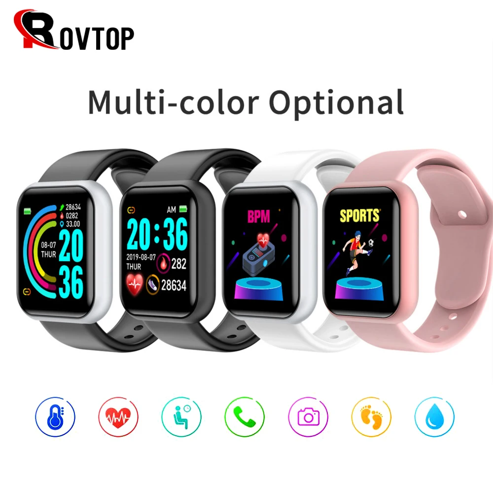 Силиконовый ремешок D20, водонепроницаемый прочный браслет из ТПУ для умных часов Y68, высококачественный сменный браслет на запястье, розовый, белый, черный
