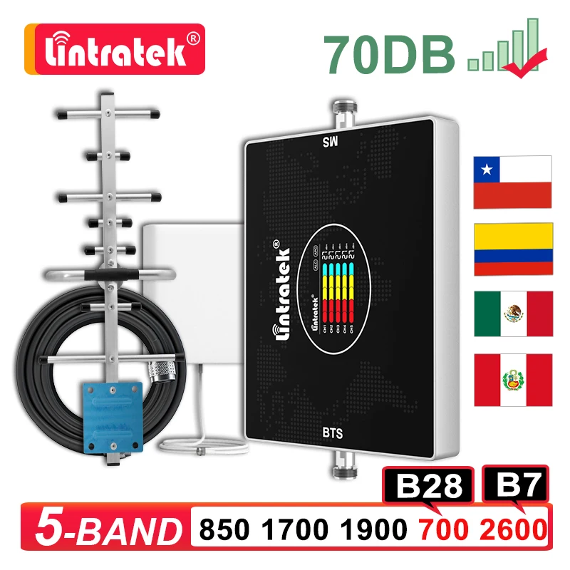Lintratek 5 пятиполосный Репитер сигнала B28 700 850 1700 1900 2600 B7 LTE CDMA 2G 3G 4G Celular усилитель антенны Yagi Комплект Усилителя