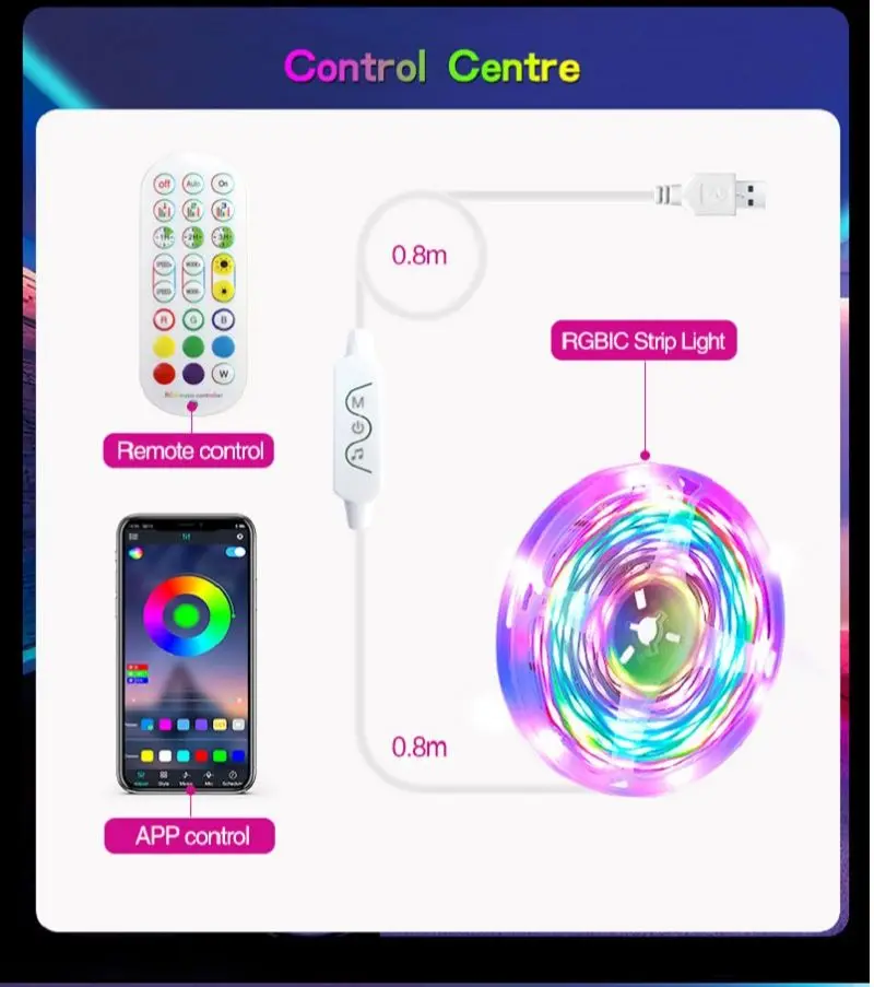 1.RGB 5050IC светильник-бар: отличается от обычного RGB 5050, изменяющий цвет светильник-бар, на один более интегрированный IC чип, чем обычный светильник-светильник, меняющий цвет. Обычный RGB может достигать только полноцветного скачка и регулировки яркости одного цвета, в то время как RGB 5050IC светильник-полоски можно достичь через систему управления (в том числе: многоцветный цикл, одноцветная ходьба, два цвета и т. д.)2. Питание через USB может использоваться devuces с адаптером 5 В.Совершенно новое обновление, с использованием источника питания USB, попрощайтесь с традиционным блоком питания, что делает метод электропитания более простым. USB розетки, банки питания, ноутбуки и т. Д. Могут обеспечить питание продукта.3. Управление приложением, вы можете свободно регулировать несколько режимов и огнейУправление через приложение может быть реализовано через мобильный телефон Bluetooth. Музыкальная функция реализована через мобильный телефон микрофон или музыку на мобильный телефон.4. Использование высококачественных кристаллов RGBIC5050, встроенный чипВстроенный чип в лампах Сегментированный Индивидуально Цвет в линии сильной яркости. Полностью гладкий и даже диффузный светильник, решение проблемы с неровным светильник