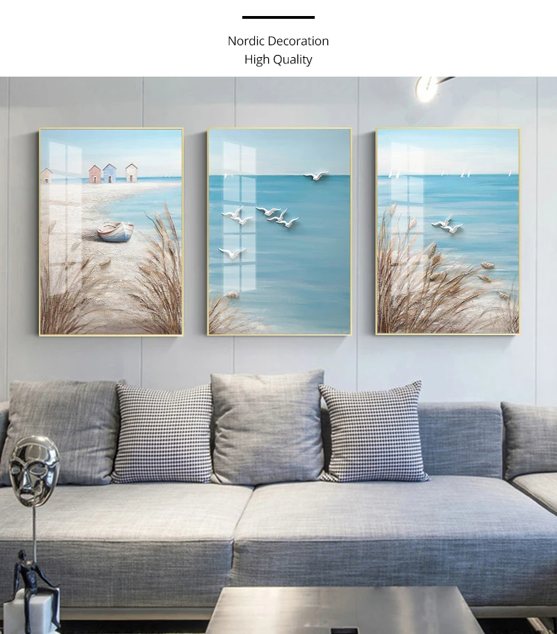 Скандинавский природный пейзаж, холст, живопись, трава, пляж стена чайки, художественный плакат, фотография, современный Декор для дома