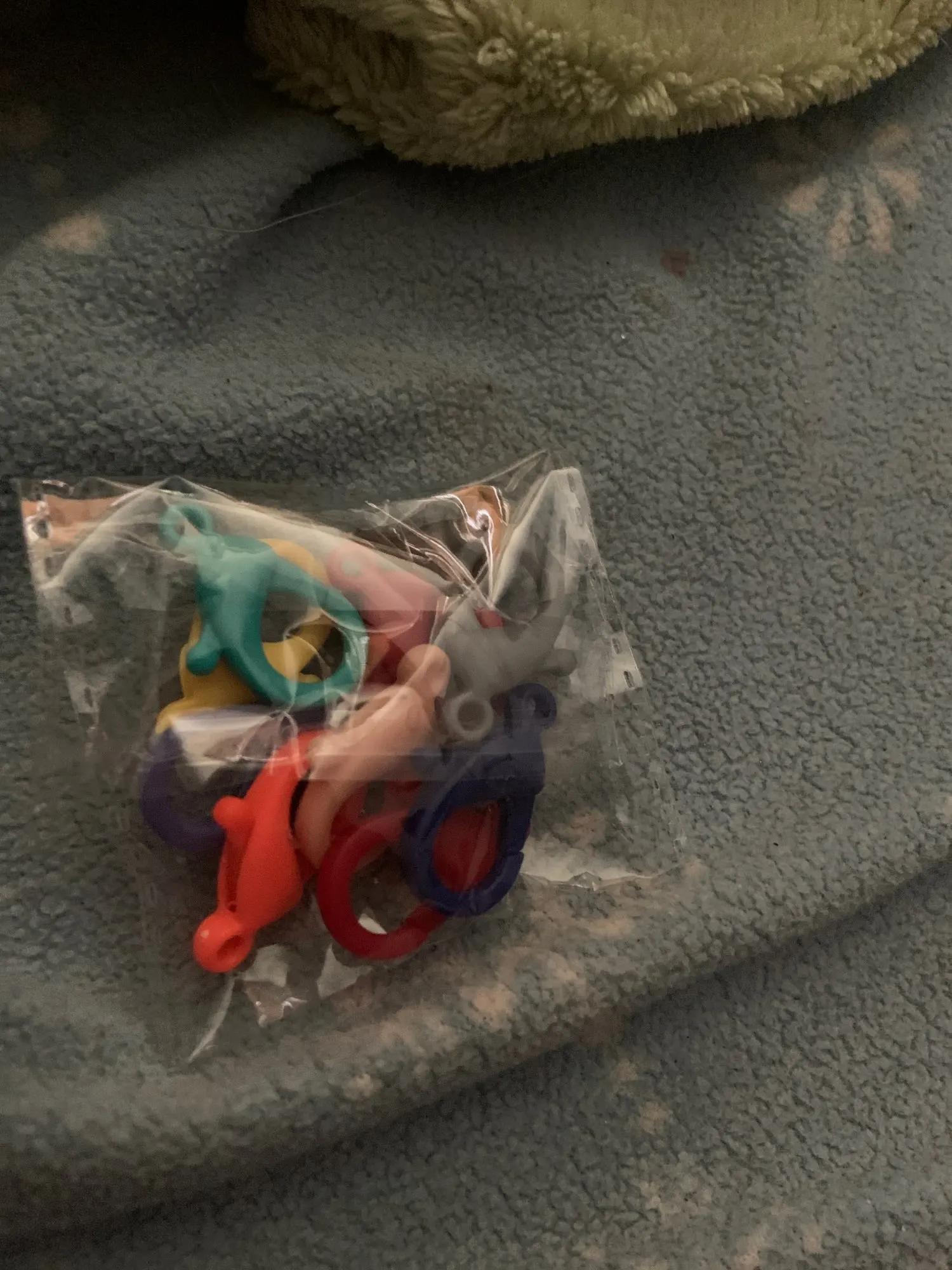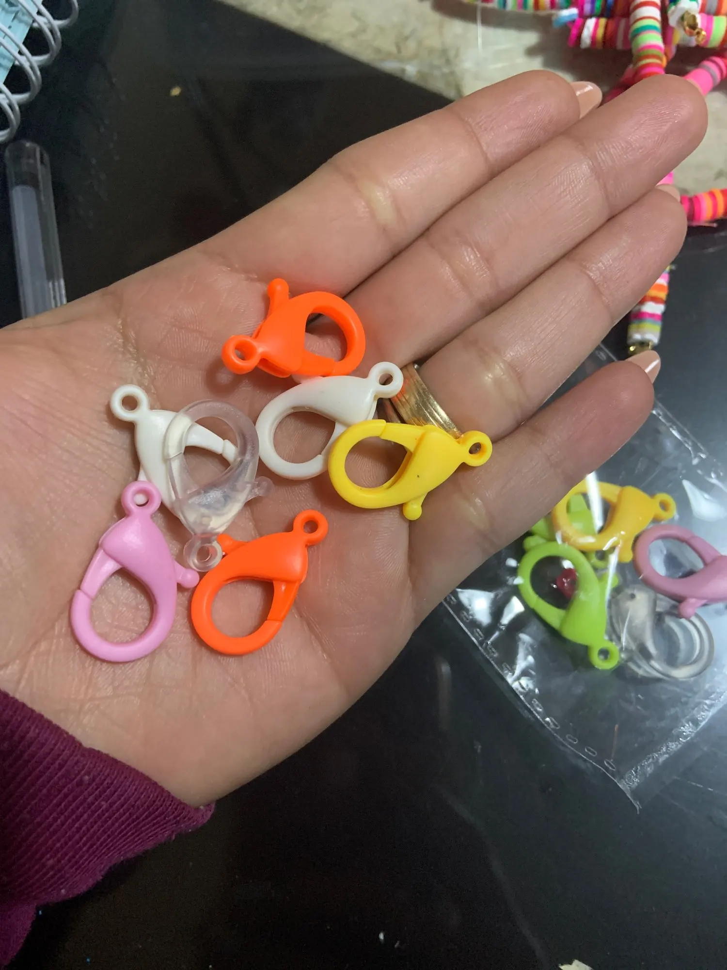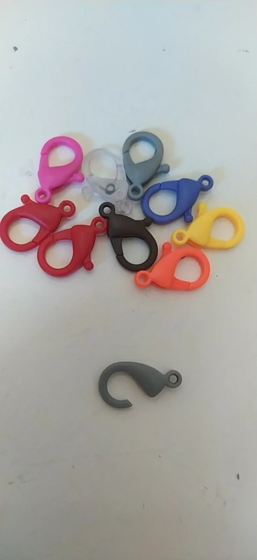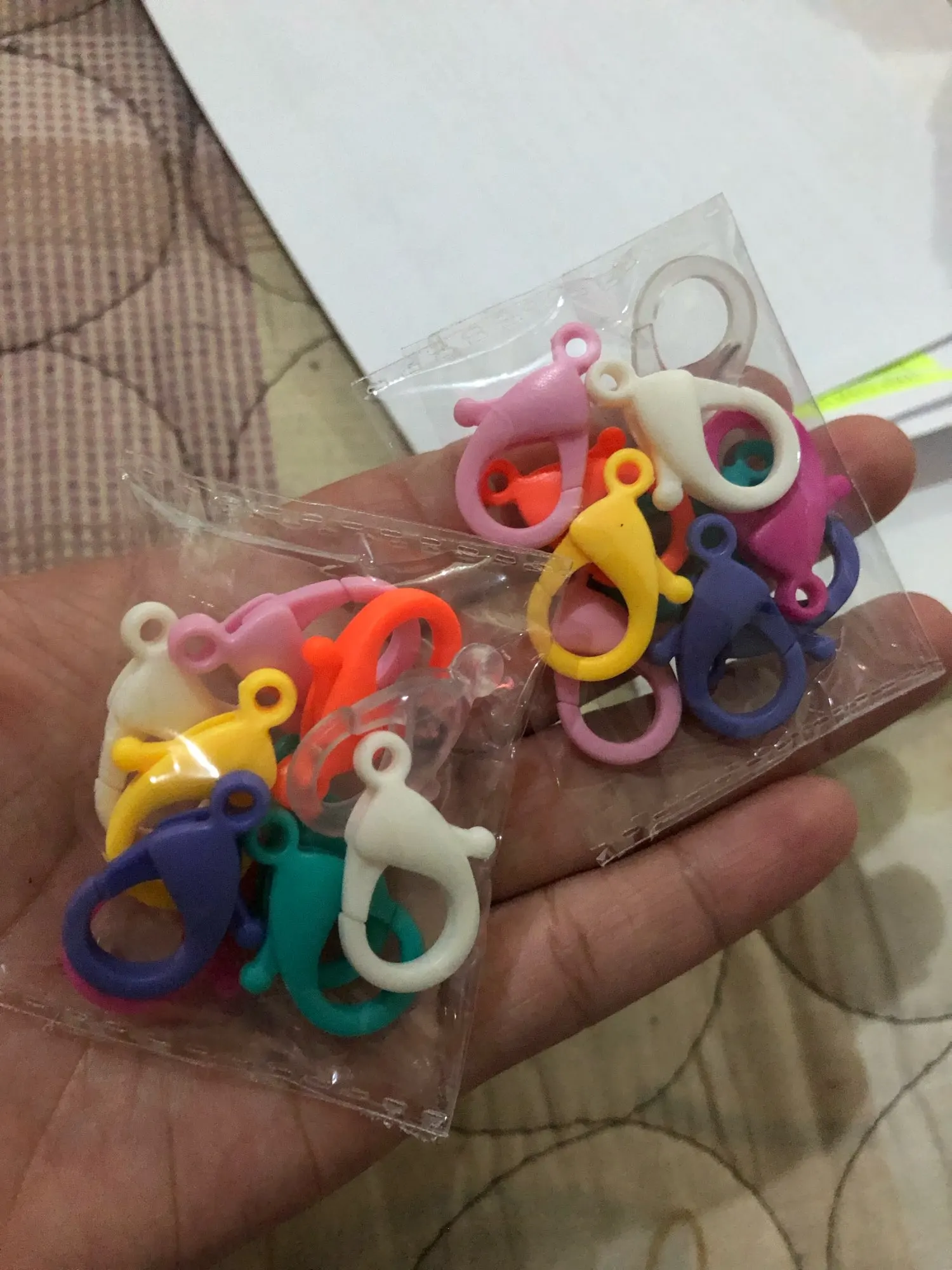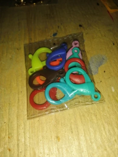 Хорошие карабины, брала, чтобы зацепить детские варежки на резинку. Рассчитывала, что попадутся прозрачные хотя бы 2 шт, но их не было. В упаковке все цвета разные. Варежки держатся нормально