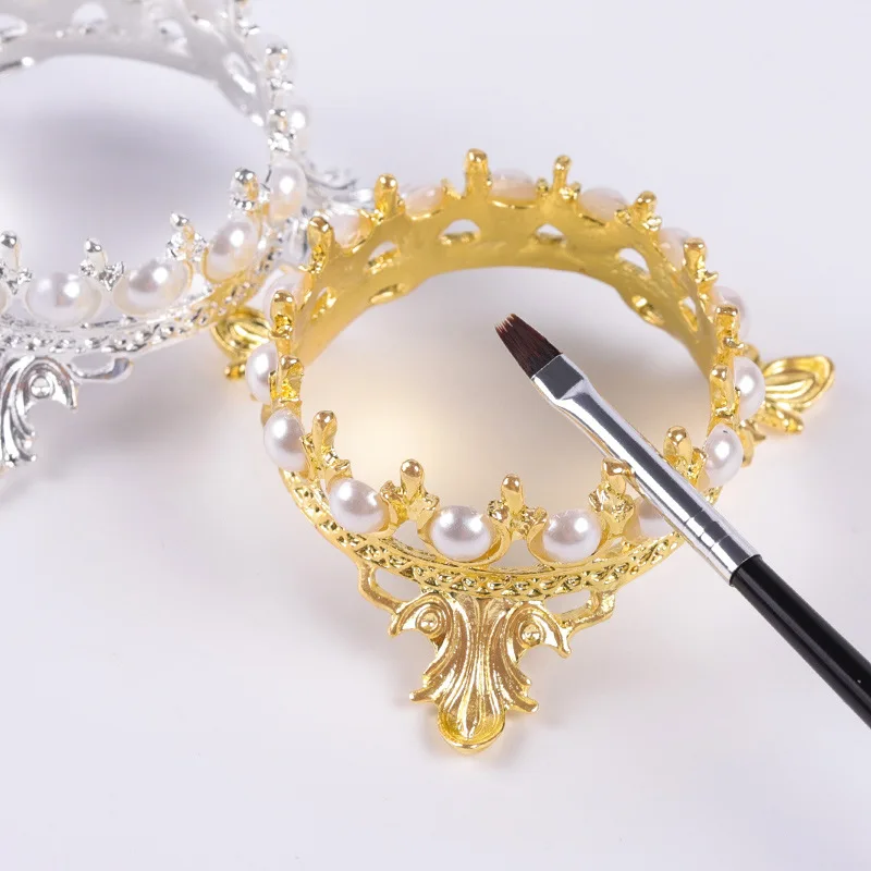 Держатель для ногтей в стиле ретро с жемчужной короной, 6 видов золотых и серебряных, стеклянная Корона, Хрустальная ручка, инструмент для мытья ногтей, аксессуары для палитры