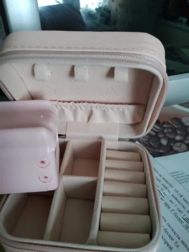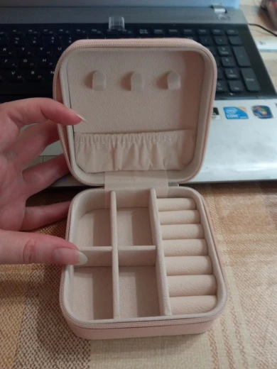 Маленькая, миленькая коробочка для украшений. Удобно брать с собой так, как вмещается в сумочку и очень лёгкая. Немного меньше заявленного размера. Приятный на ощупь,нежный цвет. Перегородки можно убрать, чтоб положить более крупные предметы. Посылка пришла почти через 3 недели. Осталась довольна товаром. Рекомендую к покупке у этого продавца