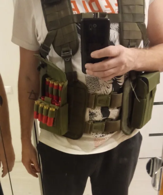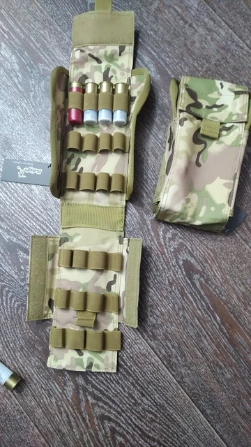 Отличный патронташ для носимого боекомплекта. качество материала и прочность швов на высоте. 12кал. держится достаточно хорошо, но можно было бы поплотнее резинку натянуть. Система крепления не согласована с MOLLE, но с допущениями встаёт