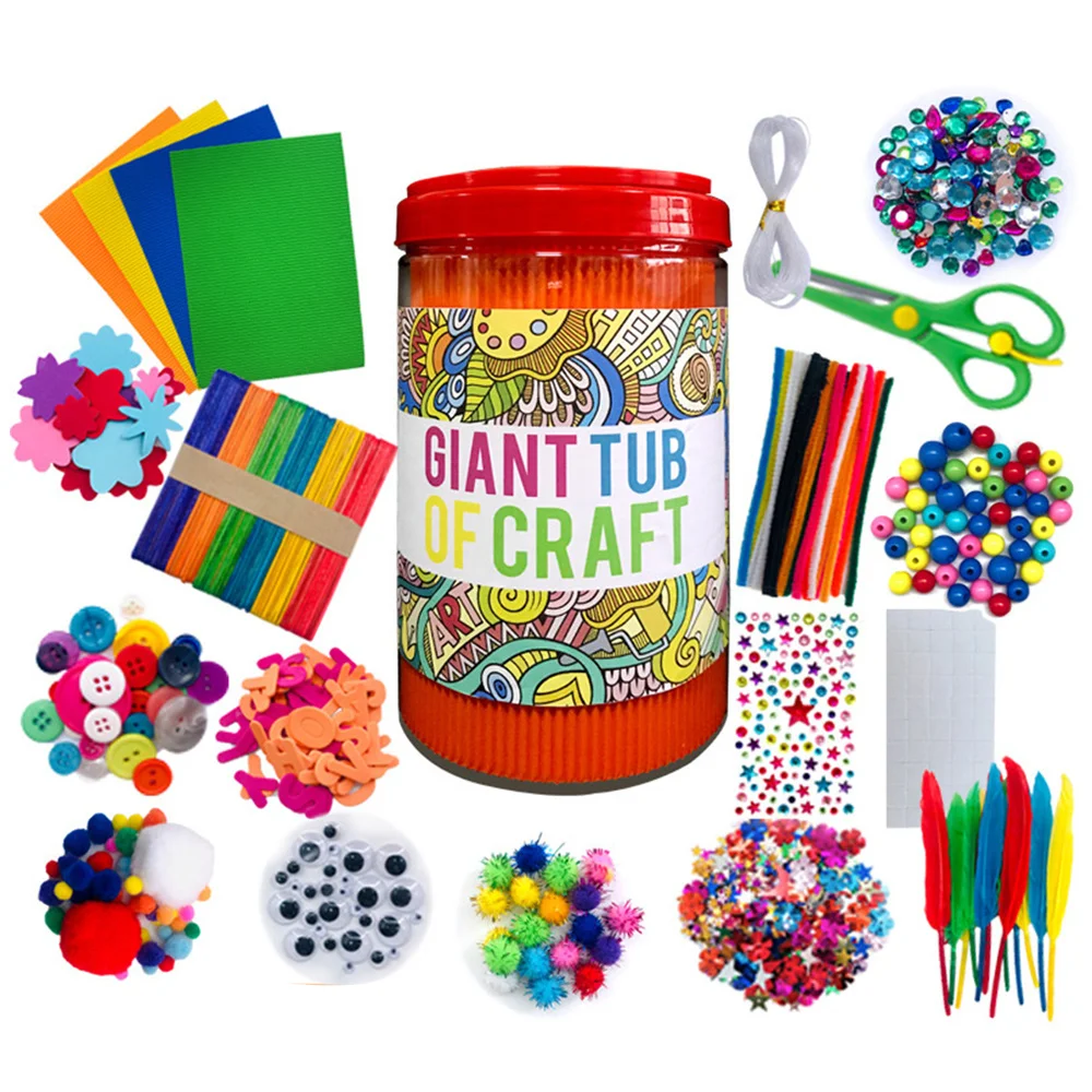 1. Большое цельное сочетание включает в себя: цветные очистители труб, помпоны, интересные блестки, глаза в форме глаз, буквы из пенопласта, цветы, Пластиковые Бусины, деревянные палочки, бумажные свитки, клеевые палочки, пластиковые безопасные ножницы, акриловые яркие бриллианты, пластиковые единороги и т. Д.