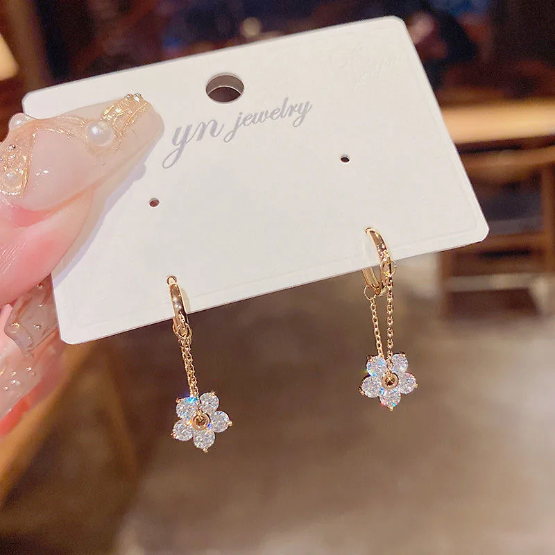 Корейские элегантные серьги-кольца с цирконом для женщин и девушек модная металлическая цепочка серьги ювелирные изделия