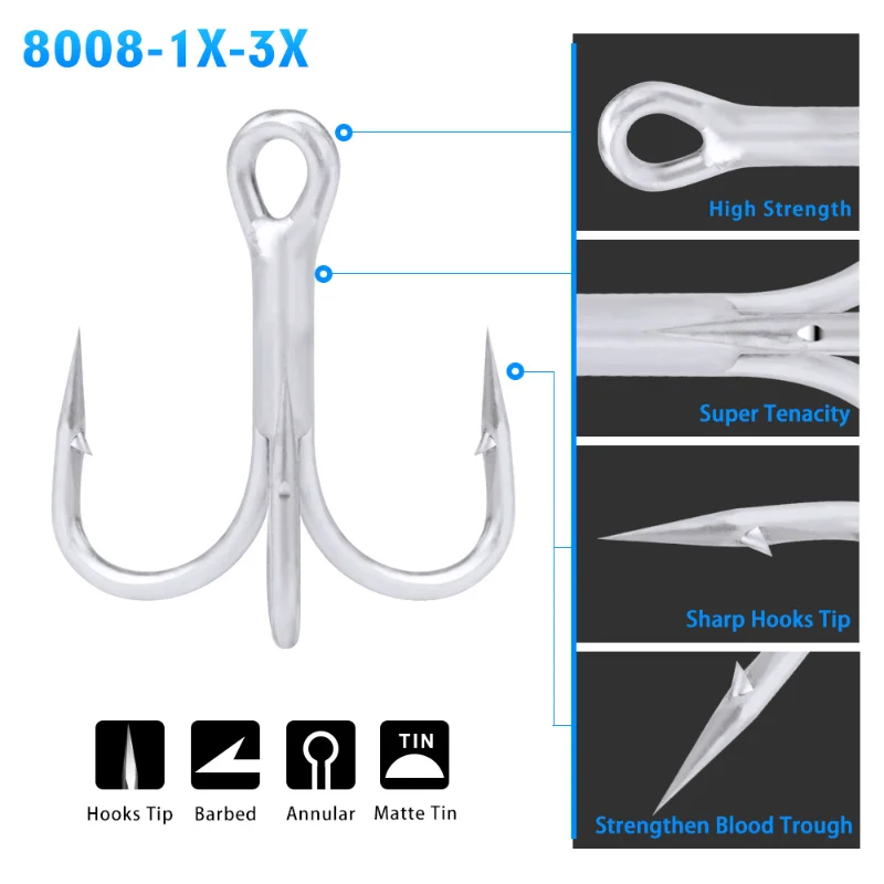 Крючок для морской рыбалки, 510 шт., 4X, матовый жестяной Тройной К...
