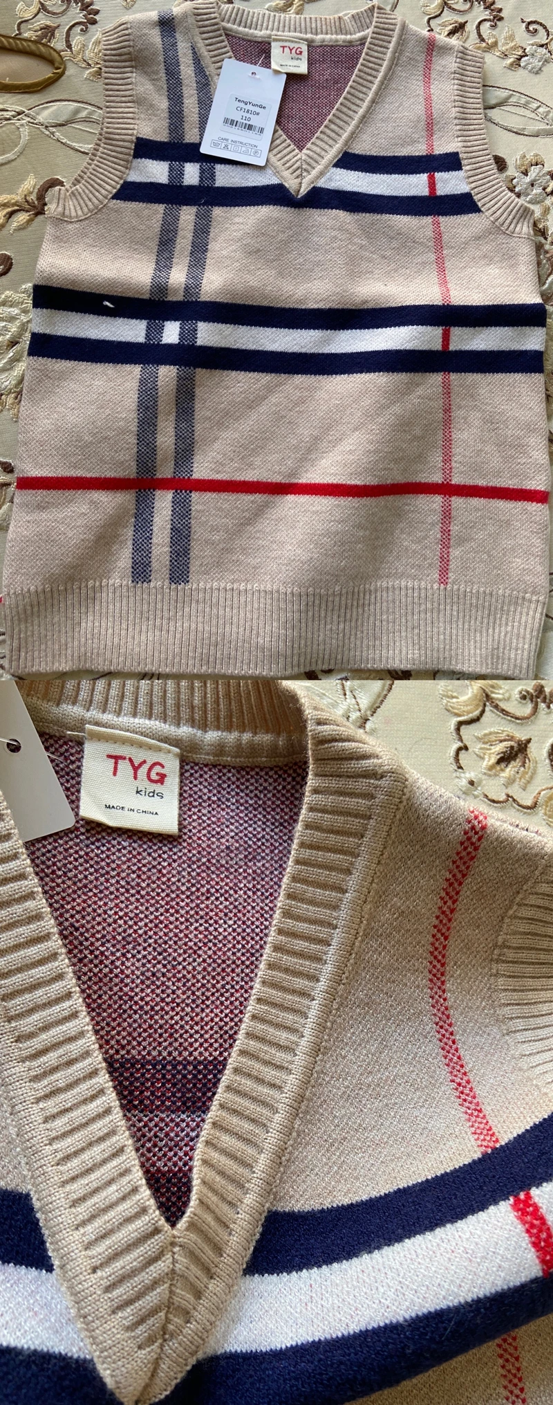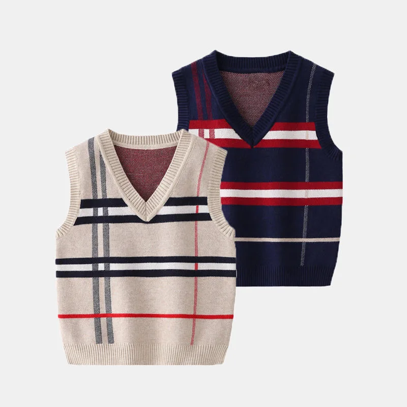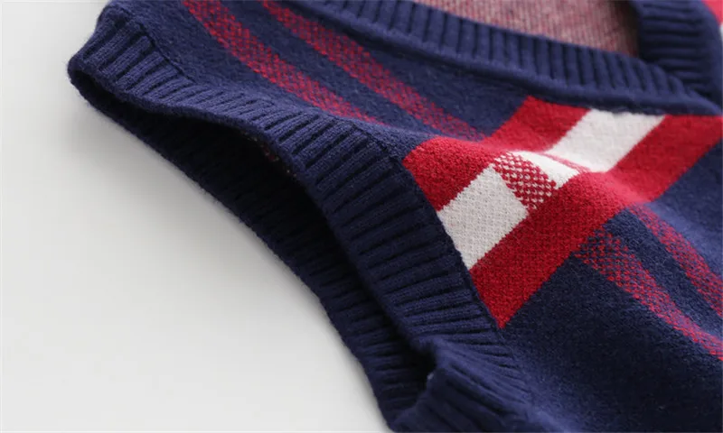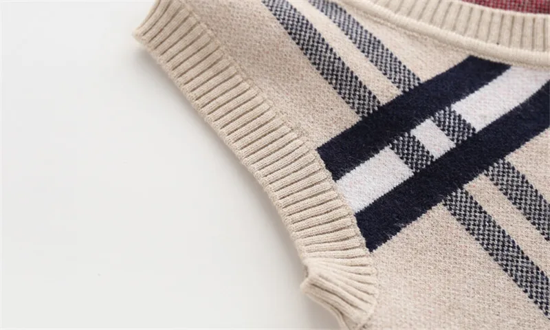 Свитер-майка в клетку для маленьких мальчиков и девочек, Осенний Вязаный топ с V-образным вырезом, Модная трикотажная одежда без рукавов
