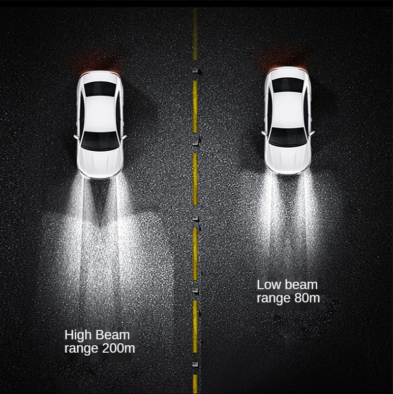 Светодиодный лампы на 400% ярче, чем галогенные лампы, и поле зрения на 100% ярче, чем другие лампы. Режим фокусированного луча освещает дорожные знаки без мерцания других водителей.