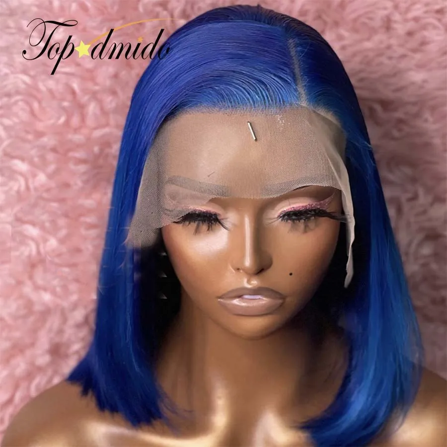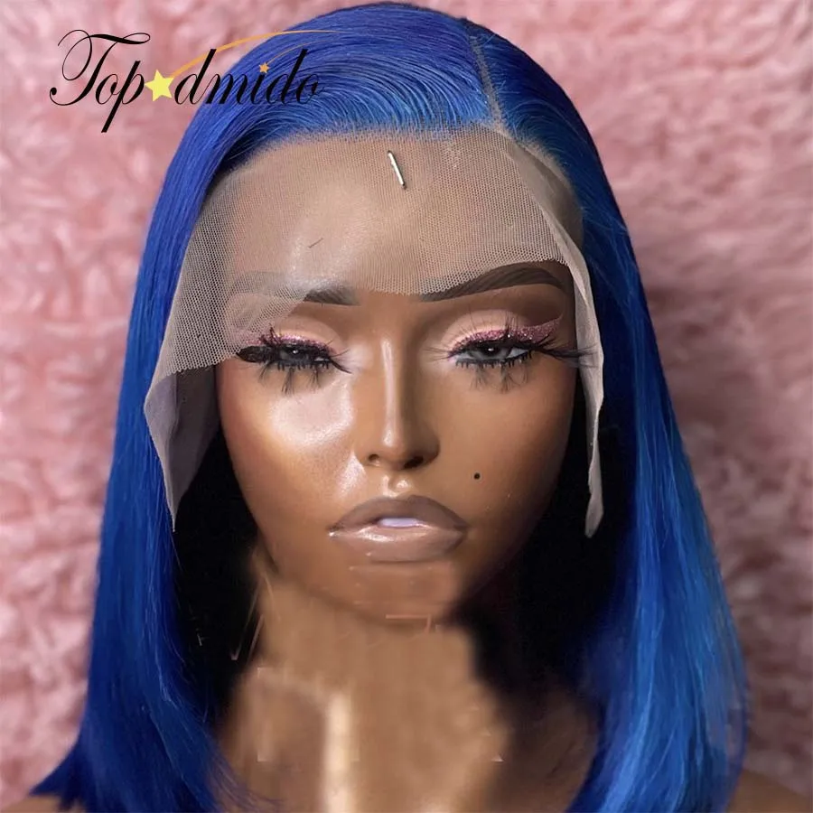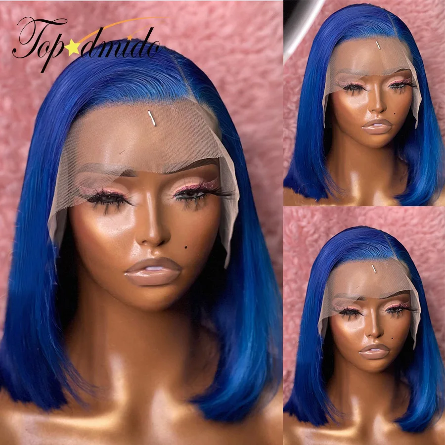 Парики TOPODMIDO из натуральных волос синего цвета с застежкой 4x4, с боковой частью, бразильские волосы Реми, короткий парик Боб, клейкие волосы 13x6x1, парики на фронтальной сетке