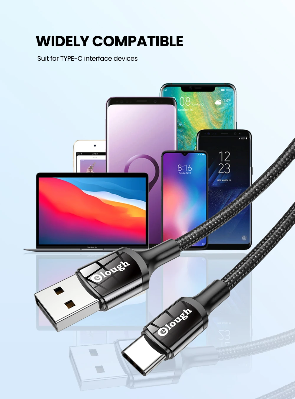 Кабель зарядный Elough USB Type-C с поддержкой быстрой зарядки