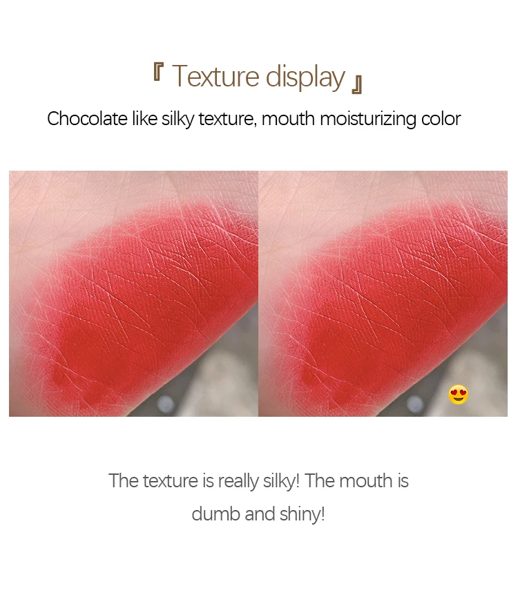 Шоколадный шелковистый размер, увлажняет и окрашивает рот.
