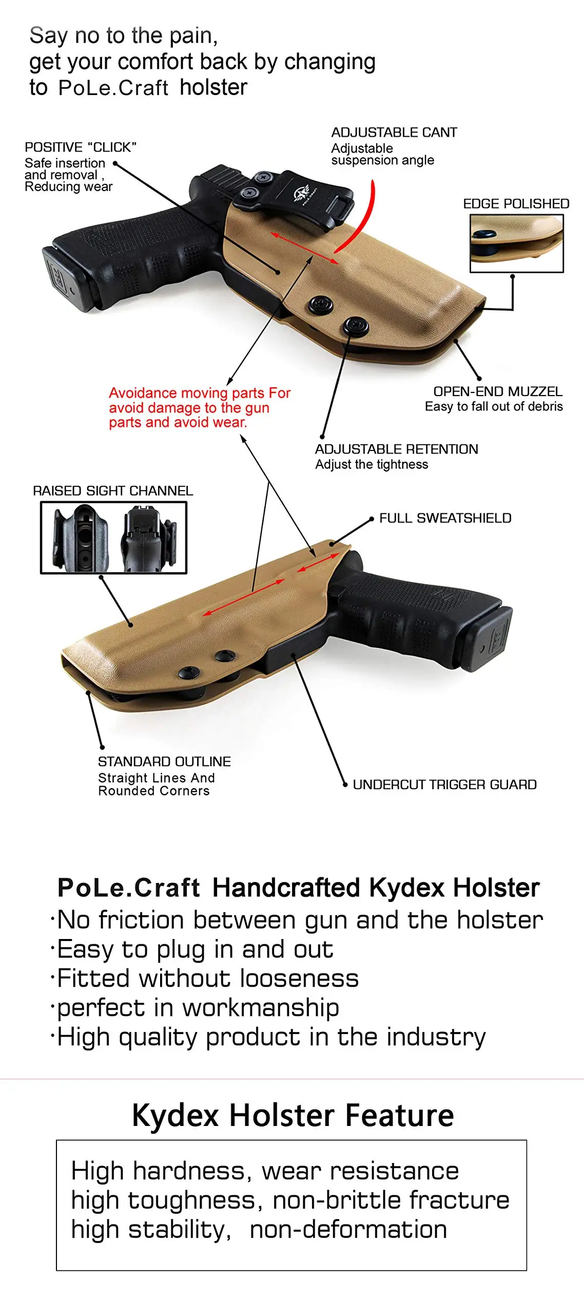 LIFETIME WARRANTY: We confidently offer a lifetime warranty that gives you peace of mind when choosing PoLe.Craft IWB KYDEX Holster. If our products do not work as promised, please return a replacement or a full refund.