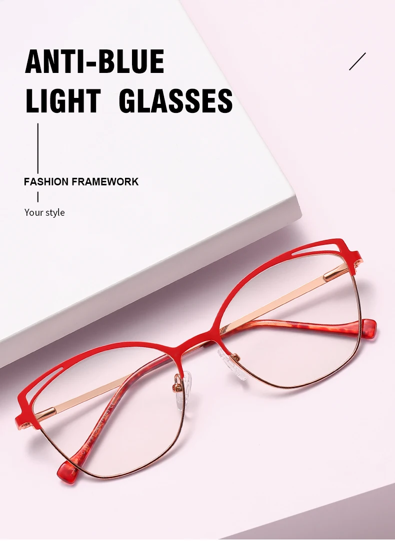 Женский синий светильник, блокирующие очки, металлическая двухцветная оправа кошачий глаз, женские очки для чтения по рецепту, близорукость, дальнозоркость, компьютерные очки, оправа