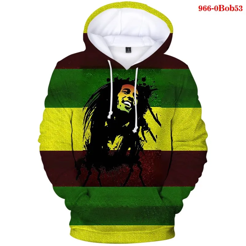 Толстовки в стиле Харадзюку С 3d принтом, Мужская одежда, свитшоты, осенняя Повседневная Толстовка с капюшоном, женские топы в стиле хип-поп, Боб, Марли