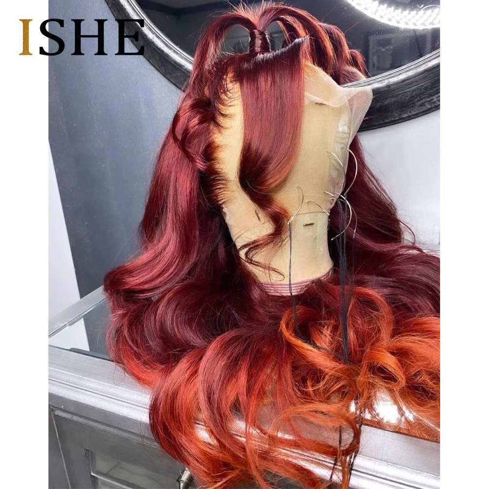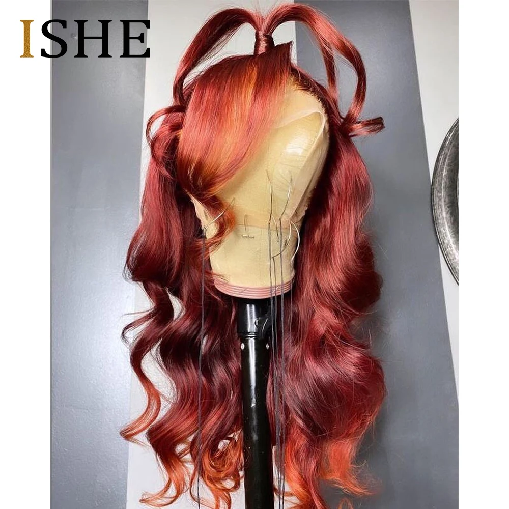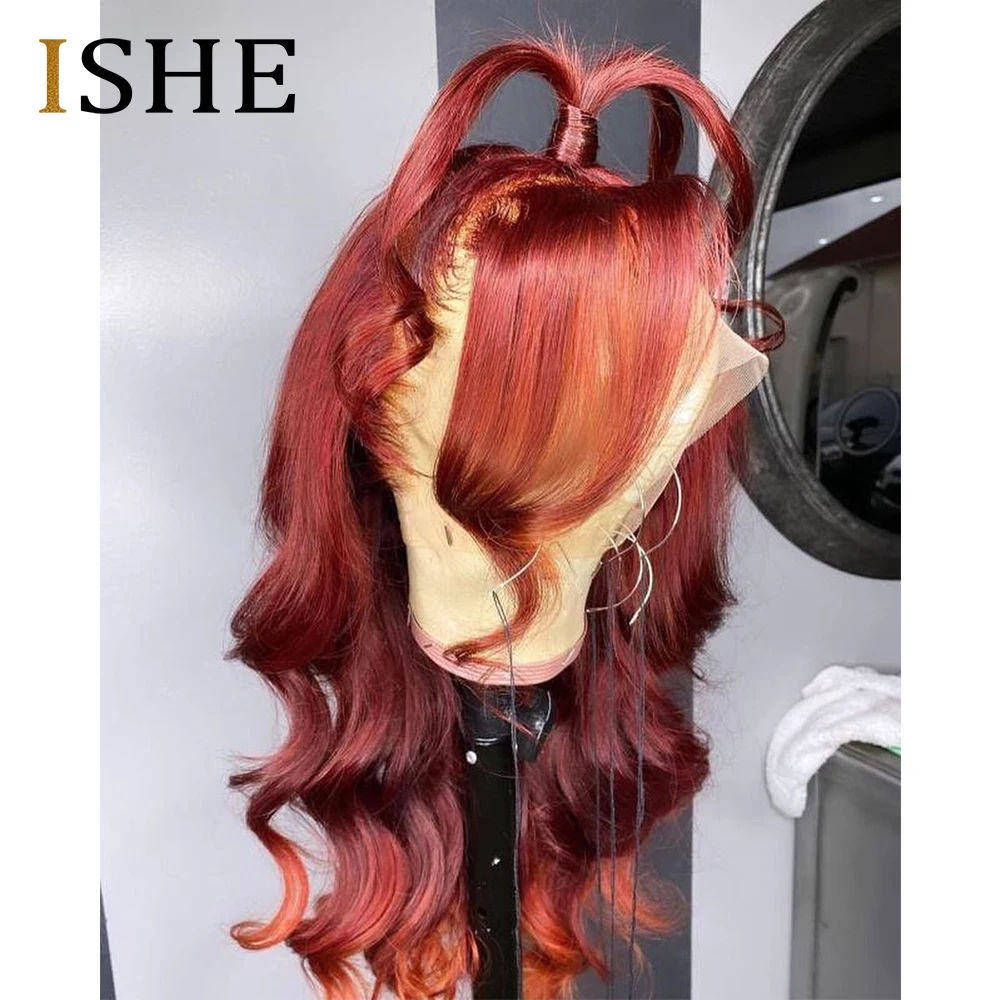 Красный бордовый Омбре 13x 6 парик из человеческих волос на сетке с...