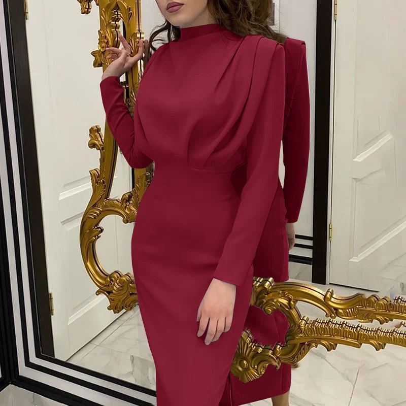 Элегантное женское платье с воротником-стойкой, облегающее однотонн...