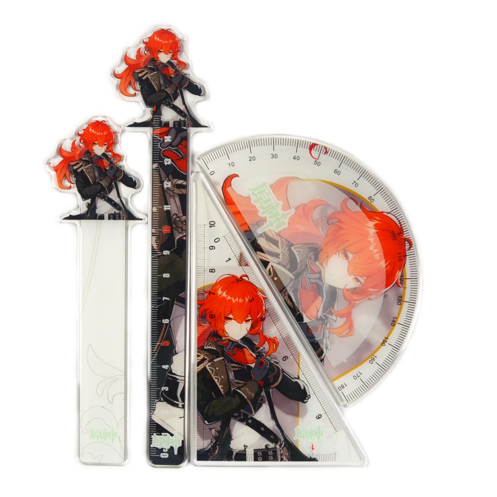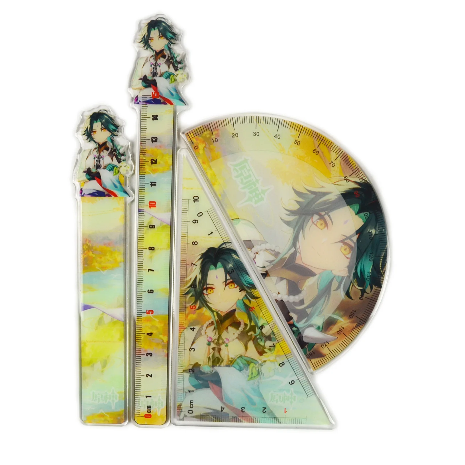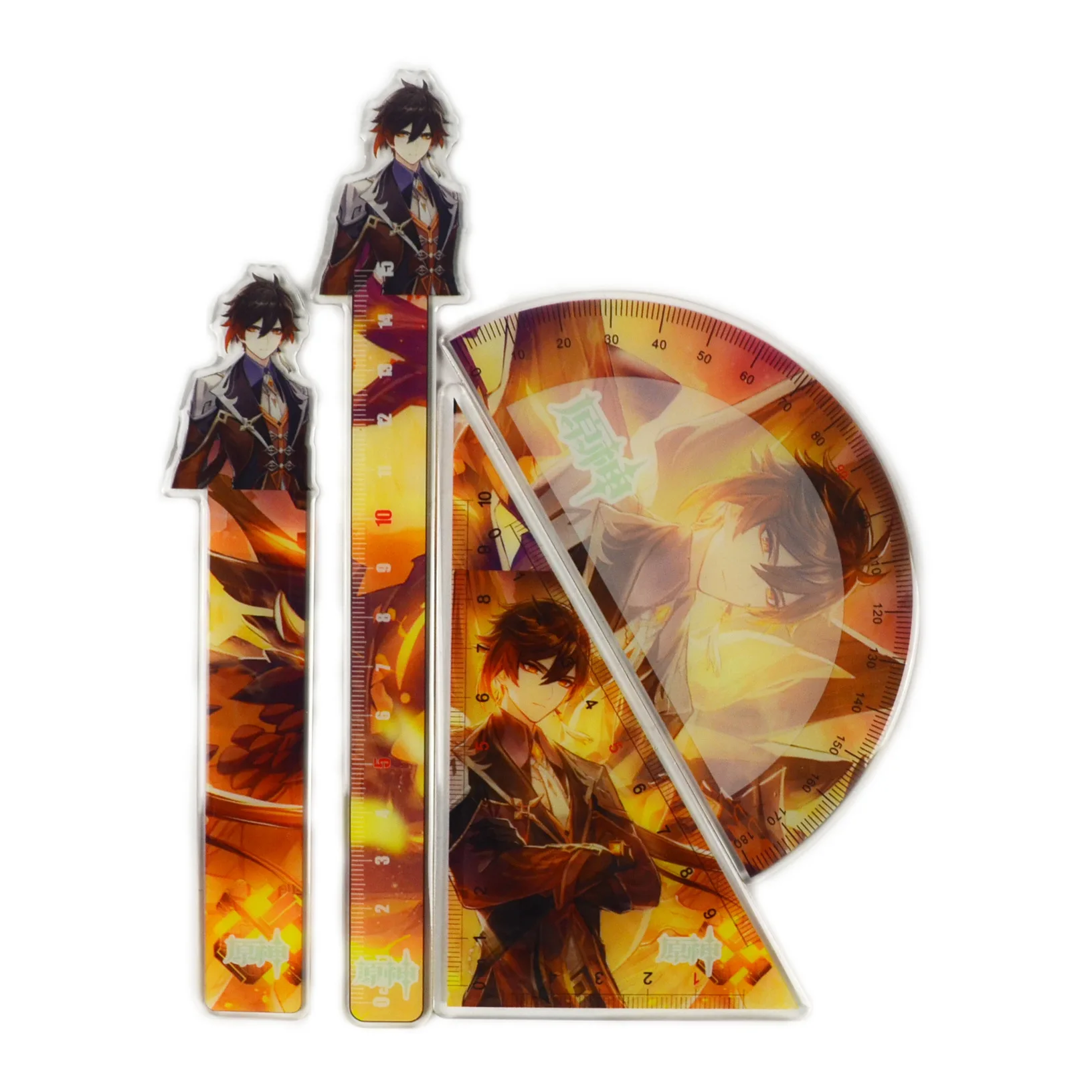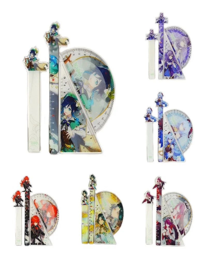 Genshin ударная фигура Venti Ganyu Keqing Xiao Diluc Zhongli Косплей акриловая линейка высокой четкости Печать Детские канцелярские принадлежности