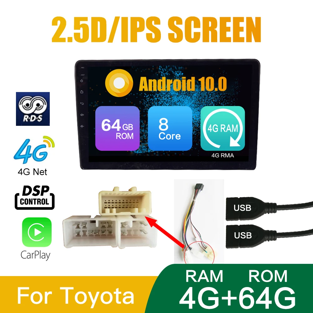 9 дюймов 10 дюймовВосьмиядерныйAndroid 10,0 4 Гб ОЗУ 64 Гб ПЗУ автомобильный Радио мультимедийный видео плеер Авто Стерео GPS карта для универсальной Toyota Nissan Suzuki ISO