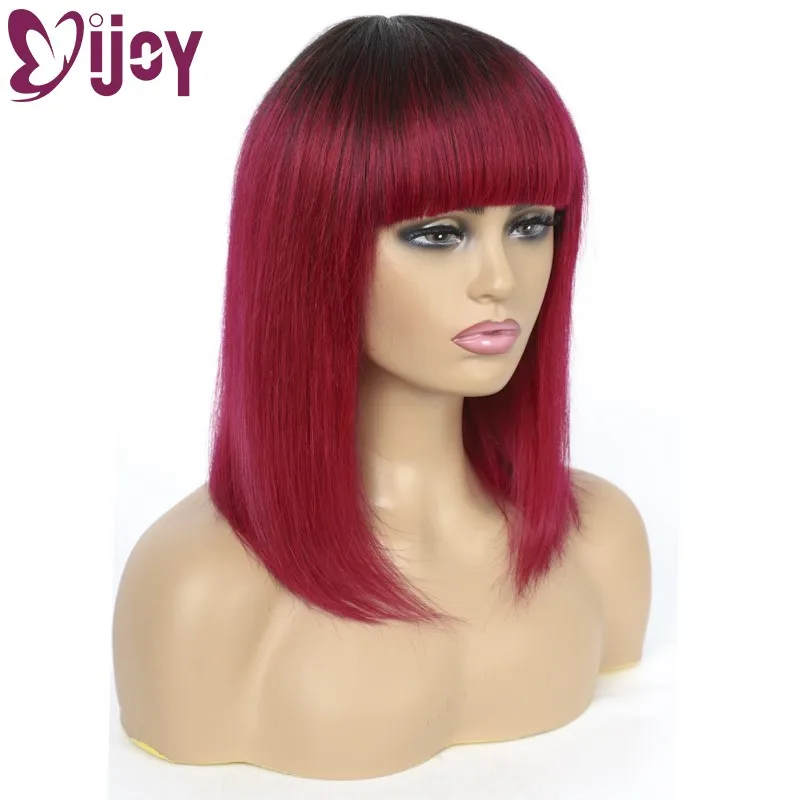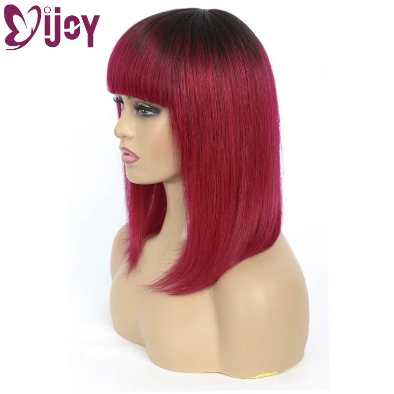 Красные бразильские прямые волосы с эффектом омбре, парики из человеческих волос с челкой для чернокожих женщин, парик для полной машинной работы, короткий Боб, парик без повреждений IJOY
